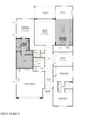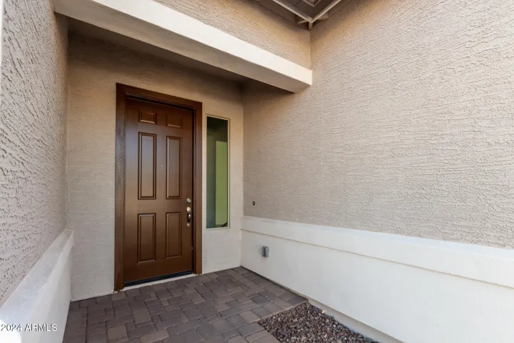 Discover the essence of luxury in this home featuring an upgraded gourmet kitchen with quartz countertops, 42-inch cabinets, & expansive walk-in pantry. The spacious design includes 10-foot ceilings, staggered wood-look tile, and multi-slide patio doors that enhance the open, airy feel. The Primary suite bathroom features an upgraded shower with an added secondary rain shower head. Practicality meets style with 8-foot garage doors & paver driveway, offering ample space for storage and vehicles.