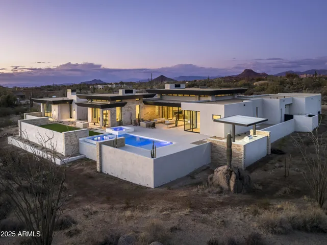 Set on nearly 5 acres of pristine desert land, this estate provides unobstructed, panoramic 360-degree views of iconic landmarks, including Tom’s Thumb, the McDowell Mountain Preserve, Pinnacle Peak, and Four Peaks. Whether you’re enjoying vibrant sunsets or the sparkling city lights below, this home offers unparalleled vistas that create a serene, private retreat.