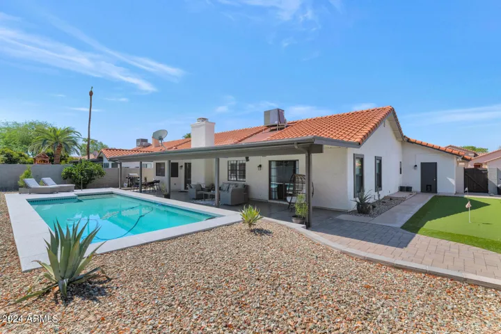 THIS IS A FURNISHED RENTAL THAT IS AVAILABLE SEASONALLY, LONG TERM PRICING, PLEASE CALL FOR BLENDED RATE!!! (Jan – Mar $4,995) (Apr, Oct – Dec $3,995) (May – Sep $3,495)!! Move-In Ready! Conveniently nestled near Fwy 60, shopping spots, & restaurants. Offering attractive curb appeal w/a 3 car-garage. Discover a charming living & dining room upon entrance, filled w/so much natural light, gorgeous wood-look flooring, vaulted ceilings, & backyard access. Gather around the fireplace on those chilly AZ nights! Well-kept eat-in kitchen is a cooker’s delight, SS appliances, plenty of cabinet space, & bay window w/backyard views. Enjoy your gatherings in this serene backyard w/covered patio, putting green & refreshing blue pool. A must-see home you don’t want to miss!