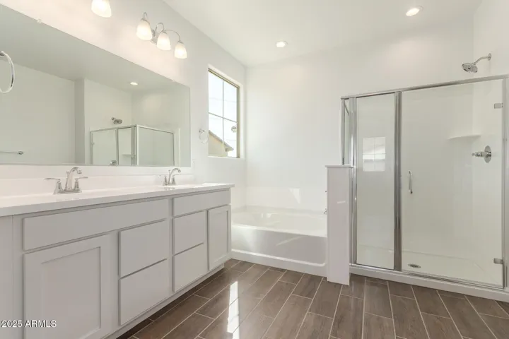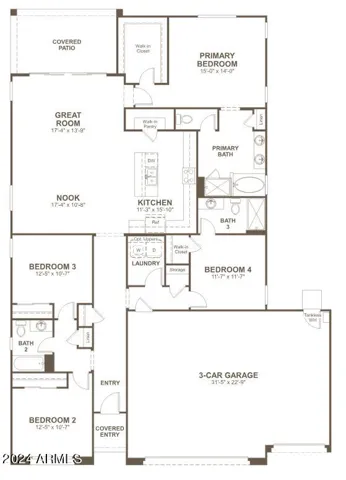 The stunning Slate plan opens with two bedrooms flanking a full hall bath. Beyond the entry, you’ll find an open layout offering a dining nook, a great room with access to an inviting covered patio, and a kitchen with a center island, walk-in pantry and abundant cabinetry. The primary suite is nearby, boasting a generous walk-in closet and a private bath with a separate shower and soaking tub. Select homes will offer deluxe features in the primary bath. A laundry room and a fourth bedroom with an attached bath are also included. You’ll love the professionally curated finishes!