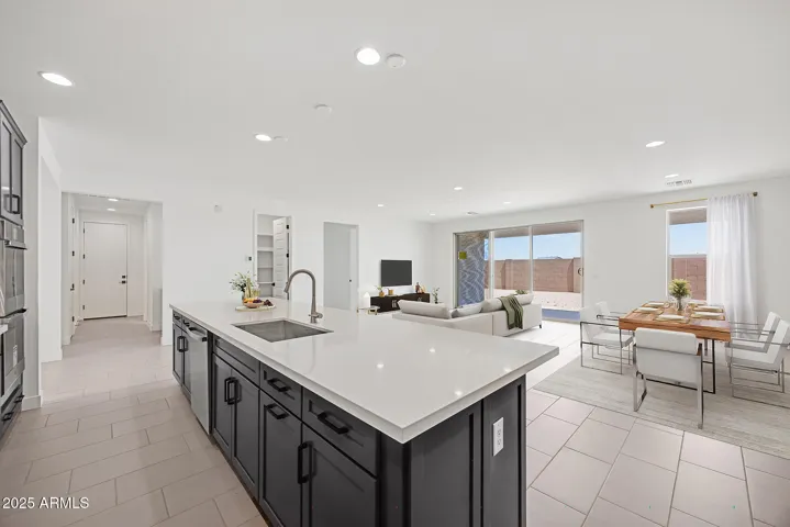 New Construction – Ready Now! Built by America’s Most Trusted Homebuilder. Welcome to The Everglade floor plan at 25137 N 171st Ave at Artisan at Asante offers a bright and open design made for modern living. Step through the charming porch into the foyer, where you’ll find three bedrooms and a full bath on one side, while across the way, a laundry room, an additional bedroom, and a second bath add extra convenience. The heart of the home features a seamless flow between the great room, casual dining area, and a stylish kitchen with an island. Tucked away for privacy, the serene primary suite boasts a spa-inspired bath and a spacious walk-in closet. Virtually Staged Photos Added. MLS# 6776933 Additional Highlights include: paver front porch, 12′ x 8′ 8′ multi-slide door at gathering, super shower at primary bathroom, gourmet kitchen, and study in lieu of bedroom 2.