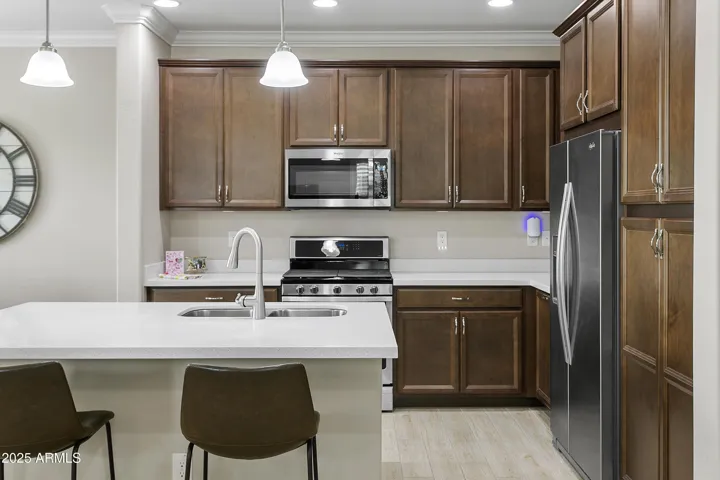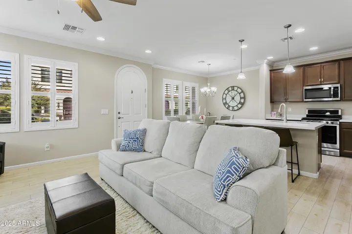 Step into this beautifully maintained/updated 2-story townhome located in the highly desirable and gated community of Siena at award winning Ocotillo. This spacious home offers a charming front courtyard, 4 bedrooms and 3 full bathrooms, including a tastefully updated primary suite and1 bedroom/bathroom downstairs, perfect as guest quarters. The kitchen features a gas stove top/oven, stainless steel appliances, quartz countertops, a center island with seating, and rich wood cabinetry, perfect for everyday living and entertaining. Custom plantation shutters throughout, along with elegant crown molding, enhance the home’s bright and open floor plan. Enjoy a low-maintenance, lock-and-leave lifestyle with the convenience of a 2-car attached garage and direct entry. Community resort style… highlights include heated resort-style pool and relaxing spa just a few steps from the home, outdoor kitchen with BBQ area, perfect for gatherings, children’s playground and expansive grassy dog-friendly play area, not to mention secured gated access for peace of mind. Perfectly located near top-rated Chandler schools, major shopping, fine dining, golf, and major freeways, this home offers both convenience and luxury in one of the city’s most sought-after neighborhoods. Come see it today, your next home awaits!