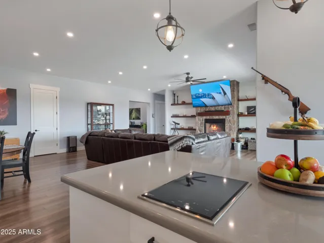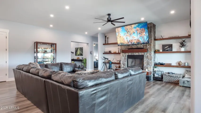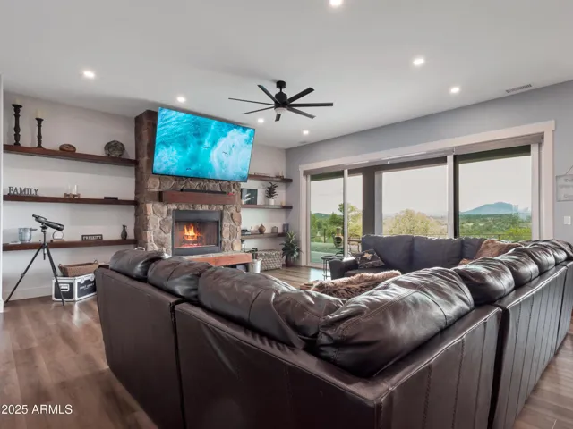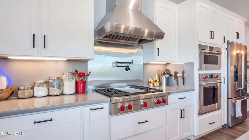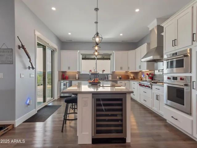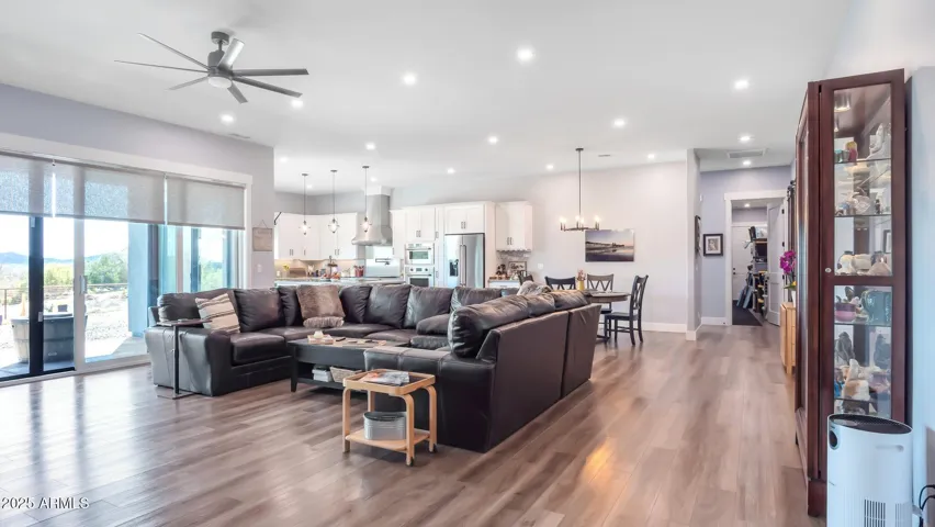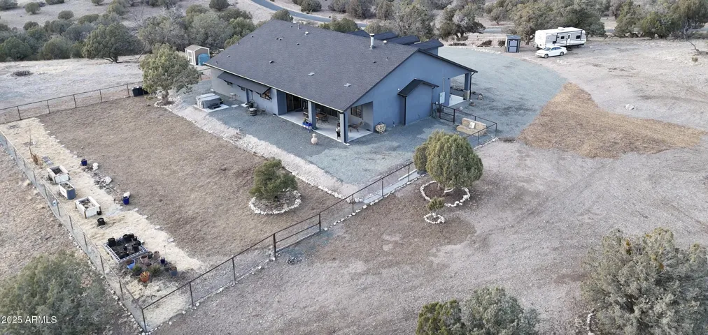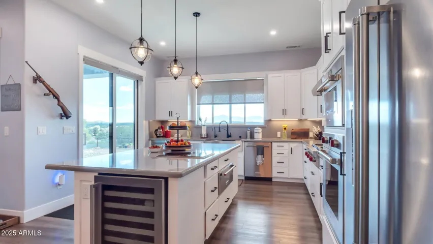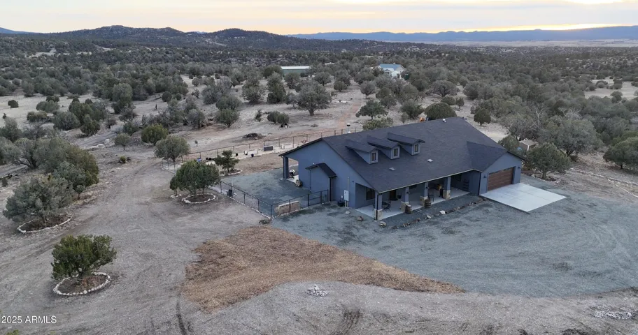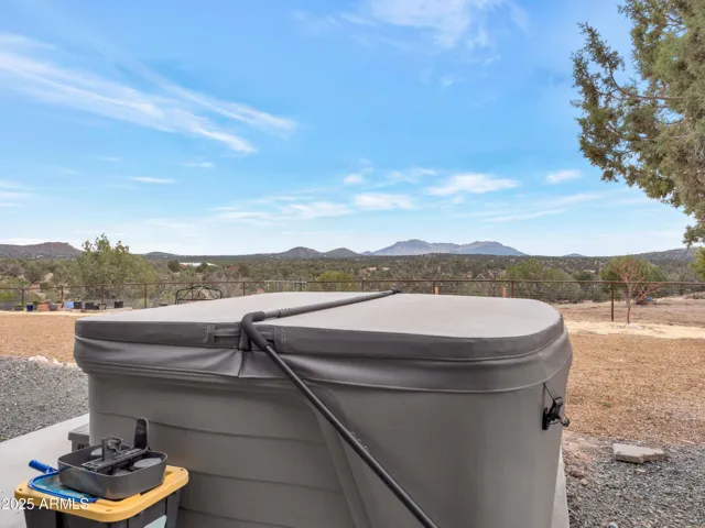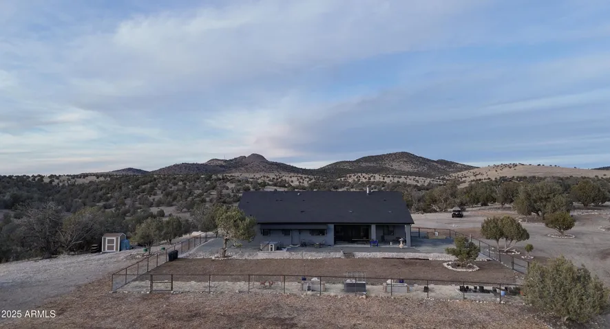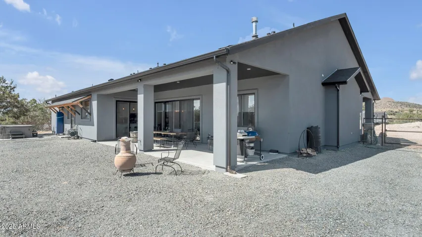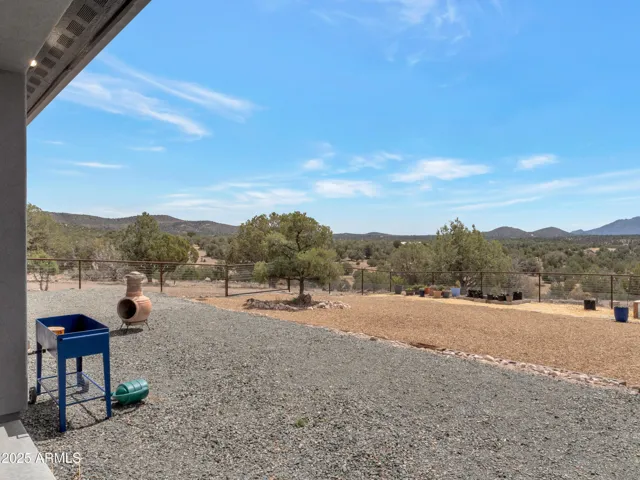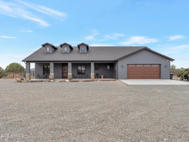 Welcome to your dream retreat! Completed in 2023, this home offers breathtaking views of expansive land in beautiful Prescott, Arizona. Designed w/ attention to every detail, this property delivers an unparalleled lifestyle with expansive space, premium finishes and exceptional amenities. Enveloped in 3132 sf are 3 bedrooms, 3 baths, an office perfect for working from home or extra guest space! Your new kitchen is equipped with a Wolf cooktop, Wolf Oven & Wolf Steam oven (run off of a 500 gal propane tank). Be sure to ask for the detailed list of every feature in this home. The stainless steel KitchenAid under counter 2 drawer refrigerator, warming tray & proofer, dishwasher & wine cooler seamlessly compliment the Krauss farmhouse sink centered in front of the picture window. To top it all off the gorgeous quartz countertops & backsplash give this kitchen the perfect finishing touches making this a culinary enthusiast dream.Thoughtful design went into providing ADA accessibility & convenience throughout. Communication & connectivity will not be a problem out here as this home is equipped with High-Speed MTE fiber optic internet & APS electricity. Did we mention the secret room? Yes, there is a 7’x8′ room for your safe, personal belongings and safekeepings with a discrete door for access; this is a must see feature for those who value safety and safe keeping! The home is also supplied with well water producing 20GPM+. The large 2 car extended garage is just the beginning when it comes to parking! You also have 3 RV Hookups (3 electrical and 1 septic dump.) With an abundance of additional parking for all of your, toys, trailers boats, RV’s or out of town guests! The versatile outbuildings include a utility shed, garden shed and a climate-controlled shed currently used as a music room perfect as an art studio, photography workspace, bunkhouse or private office. The expansive 15+ acres of outdoor space will allow you to enjoy the views of the rolling hills with Majestic Views of Granite Mountain. Your immediate backyard is enclosed for additional privacy and security with a welded, no-climb fence. Enjoy an evening soak in your hot tub right outside the master bedroom exterior door. The immediate back yard offers a perfect enclosed space for pets, your gardening area or play area for the kiddos. Whether you’re taking a stroll on your property or in the community, you may be pleasantly surprised to find some roaming cattle, a friendly fox or a few deer grazing the land. This home is a true retreat providing some of the absolute best views of Arizona’s natural beauty while enjoying all the conveniences of modern living. Don’t miss this rare opportunity to own a one-of-a-kind custom home with the perfect blend of modern luxury and serene seclusion!