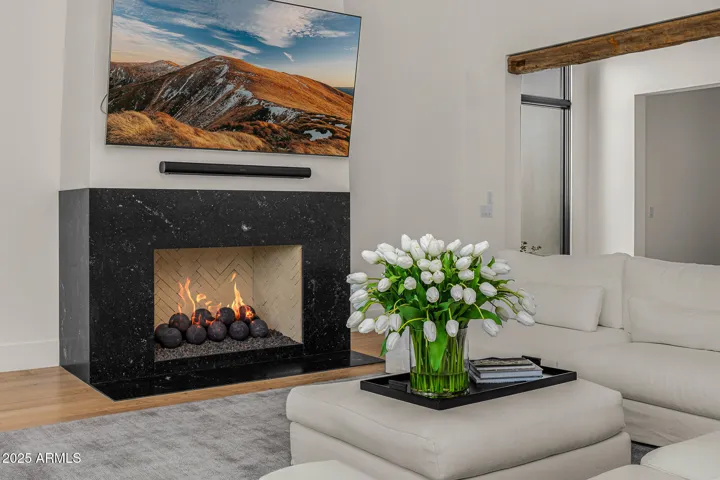 Nestled in the heart of Arcadia Proper, this recently built, Candelaria Design captures the essence of organic modern design with clean lines, natural textures, and unobstructed views of iconic Camelback Mountain. From the welcoming front courtyard—complete with a cozy fireplace—to the expansive backyard retreat, every space has been thoughtfully curated for both everyday living and elevated entertaining. The 4-bedroom floor plan is complemented by a private office and a versatile bonus room, ideal as a playroom or secondary living space. Inside, warm oak floors, marble countertops, and designer finishes set the stage for timeless sophistication. The generous primary suite is a true sanctuary, featuring a spa-inspired bath & a show stopping boutique-style closet… Seamless indoor-outdoor living is made effortless with expansive glass doors opening to a backyard oasis. A sparkling pool, rejuvenating jacuzzi, and spacious lawn create the perfect setting for gatherings or quiet evenings under the Arizona sky. This is Arcadia living at its finestorganic modern architecture, iconic views, and a lifestyle designed for both comfort and style.