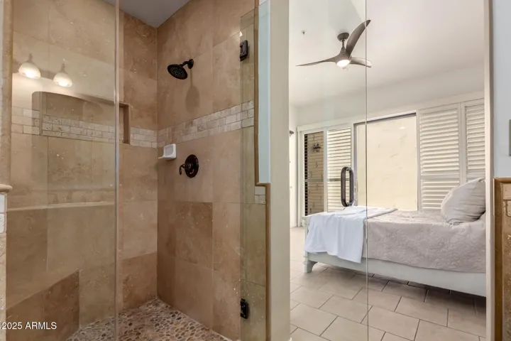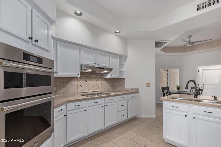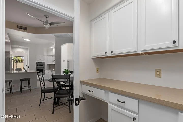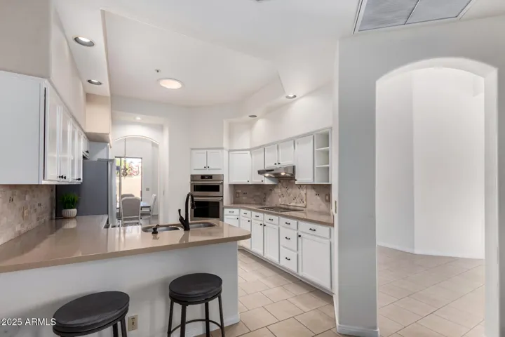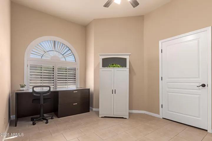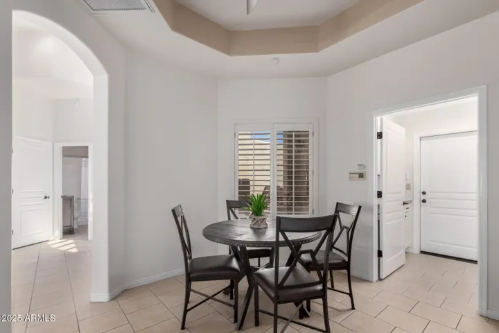 AMAZING location! This home is near all of the shopping, restaurants, spring training fields, Top Golf, and more! Whether it’s a starter home or a lock and leave home, this home is perfect! Featuring wonderful updates such as the beautiful custom iron front entry door, high ceilings, plantation shutters, and tile all throughout. The spacious kitchen has double ovens, stainless steel appliances, white cabinets, tile backsplash, and quartz countertops. Both bathrooms are updated and the spacious master bathroom includes a separate tiled shower and tub. The master bedroom also has a large walk-in closet and separate access to backyard. The backyard is very low maintenance and perfect for a nice sitting area to enjoy the outdoors, that you will never want to leave. One of only a handful of homes within the community that offers a courtyard, and this home is North/South facing at the end street with very little street traffic!