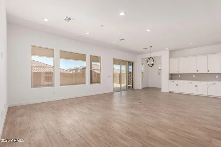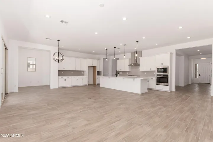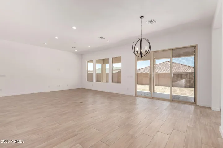 Designed for entertaining this ranch style Julia plan model home offers airy 10” ceilings. Once inside an extended entry leads to an expansive gourmet kitchen with 42” white cabinetry with matte black cabinet pulls, quartz countertops, tile backsplash, GE stainless-steel appliances with a chimney hood and 36” gas cooktop, an extended island, a breakfast nook, and a great room that includes an additional flex space. Multi-slider doors lead from the dining nook out to an extended patio. Inside a Butler’s pantry with wet bar leads to a large walk-in pantry and a formal dining room leads to an adjacent covered courtyard off to the side of the home. This home offers two bedrooms that share a jack and jill bathroom, both with walk-in closets. The primary bedroom includes a private bath with a deluxe tile shower with a rain shower, a large walk-in closet and dual vanities. In addition, this home has 9 x 35 tile throughout the home except upgraded carpet in the bedrooms only. This home also includes matte black fixtures and hardware throughout, ceiling fan prewires in all bedrooms, great room and covered patio, pendant lighting above the kitchen island, upgraded light fixtures in the dining room, nook and entry way, exterior coach lights and a paver driveway and walkway and front yard landscaping. A two car garage with a tandem car space, plus one car side turn garage is also included. This home is situated on an 8760 square foot lot with a double gate.