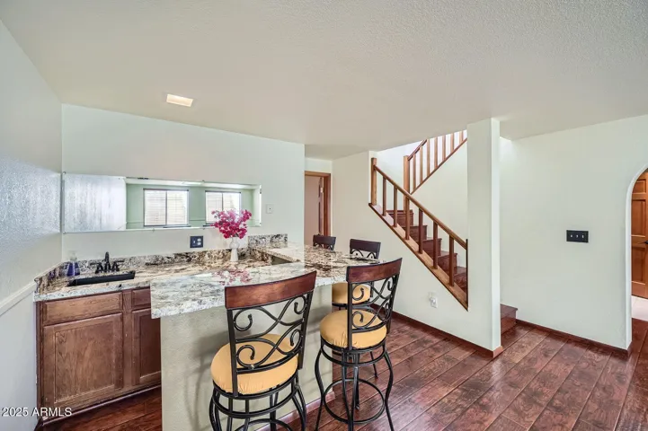 interior with stunning architectural details throughout. The kitchen offers granite countertops, tons of cabinet space, kitchen island, and an eat-in space bathed in natural light from the 2 storied bay windows.In the basement you will find two bedrooms, full bath, wet bar, and laundry room. Primary suite upstairs boasts a spa like bath with garden tub, large walk-in shower, and dual sink
