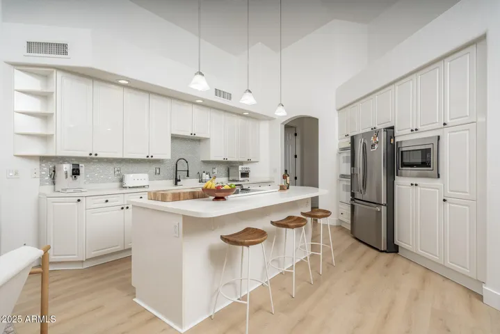 Beautifully remodeled home in guard-gated Stonegate! This light-filled 3 bed, 2 bath features wide-plank flooring, soaring ceilings, and a dramatic gas fireplace. The chef’s kitchen offers abundant cabinetry, expansive counters, and a new induction cooktop. Private primary suite with walk-in closet, French doors, and spa-style bath. Enjoy a private backyard oasis with pool, waterfall, outdoor fireplace, and built-in BBQ with fridge. EV charger & storage in garage. Pool & landscaping service included; owner pays HOA. Resort-style amenities: heated pool, tennis, pickleball, clubhouse & walking paths. Unfurnished.