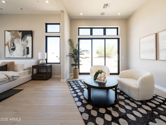 This move-in ready home offers the perfect blend of privacy and style. A welcoming courtyard entry sets the tone, creating an elegant and inviting approach. Inside, the open-concept great room is highlighted by beautiful hardwood floors and extends seamlessly to the covered outdoor patio, where expansive views provide a serene backdrop for both entertaining and everyday living. The spacious primary bath features a free-standing tub and oversized shower for a spa-like retreat. Front yard landscaping is currently underway, ensuring a fresh and finished exterior to complement the home. With resort-style community amenities, every day feels like a vacation. This home is a rare find—offering privacy, comfort, and unforgettable views.