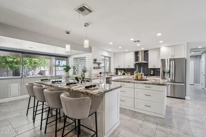 PRICE IMPROVEMENT! Prime location close to Cholla Cove Park, shopping, dining, Hiking Trailheads & the PV Mall Redevelopment! BONUS…Little to no electric bills w/ owned solar!! Don’t miss this GEM nestled in the highly desirable zip code of 85028! This beautifully updated home offers 5 bedrooms, 2.5 bathrooms & was thoughtfully designed blending modern finishes with everyday functionality. Step inside to an open-concept floor plan highlighted by porcelain tile floors, recessed lighting & dual-pane windows. The kitchen is a true showstopper — featuring white shaker cabinetry, granite countertops, a double island with hidden outlets, induction cooktop stove/oven with vent hood, wine fridge & stainless steel LG Smart appliances. The primary suite is a private retreat with an upgraded… ensuite bath; featuring a tiled walk-in shower with glass enclosure & a sliding barn door leading to the walk-in closet. The versatile 5th bedroom has access to the backyard with an attached half bath perfect for a guest suite, home office, or multi-gen living. Enjoy year-round comfort & energy efficiency with an OWNED solar system & updated HVAC with an Ecobee thermostat. Smart home features include a hard-wired ADT security system, Feit camera & doorbell system, Tesla charger & Alexa-compatible lighting throughout. The private backyard is complete with a pebble-tec pool surrounded by travertine cool decking that also runs under the covered patio & the raised patio area complimented by 2 mature mulberry trees. You’ll also love the spacious side yard with a motorized RV gate, 220V outlet for RV parking & plenty of room for all your toys.