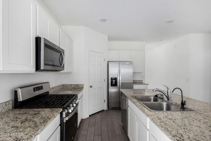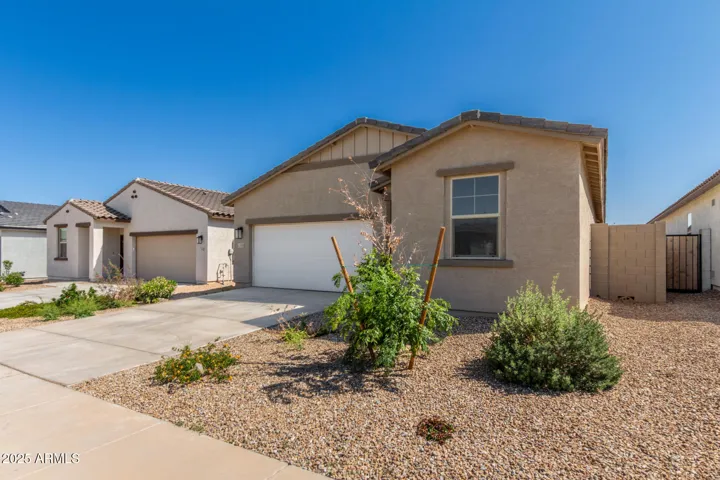 Welcome to Amarillo Creek, an exciting and vibrant new community in Maricopa, Arizona! This home, with its 4 bedrooms and 3 baths and den, boasts an exquisite design. Step inside and prepare to be wowed by the professionally appointed features throughout. The heart of this home is the beautiful kitchen, complete with granite countertops and sleek white cabinets. Stainless steel appliances add a touch of modern elegance, making this space a joy to cook and entertain in. Backyard is a blank slate and ready for you to make it your own. Why wait 6 months for a new build, we can get you into this one quickly.