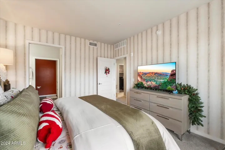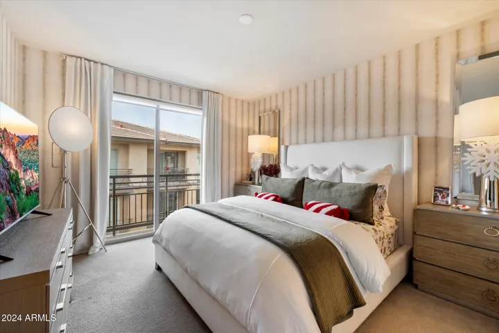 Experience luxury living in stunning Monterey Ridge! Nestled in a prime location on the top floor-elevator access, this exquisite residence boasts contemporary design and high-end finishes including a gourmet kitchen featuring sleek quartz countertops, gas range, breakfast bar and upgraded cabinetry. The primary suite offers a serene spa bathroom w/ walk-in shower, dual sinks, huge walk-in closet and private balcony. The great room opens onto another balcony perfect for enjoying morning coffee or evening sunsets. Additional features include electric blinds, updated flooring, an 8×8 storage room and overhead storage racks in the two-car garage. Steps away from fine dining, shopping, Harkins Cine Capri, LifeTime Fitness, Whole Foods and more!