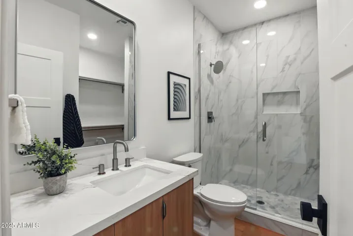 Brand new construction 4 bed, 4 bath home in Old Town Scottsdale with 2,400 sq. ft. of luxury living. Features include custom landscaping, paver drive/patios, 12′ double slider, engineered wood floors, custom cabinetry, waterfall-edge island, Sub-Zero fridge, WOLF gas range, spa-like baths with custom tile showers, and custom closets in every bedroom. Energy-efficient upgrades include R-21 wall insulation, R-38 attic insulation, double-pane windows, and a 5-ton split AC/heat pump. All just minutes from Scottsdale’s best dining, shopping, and entertainment.