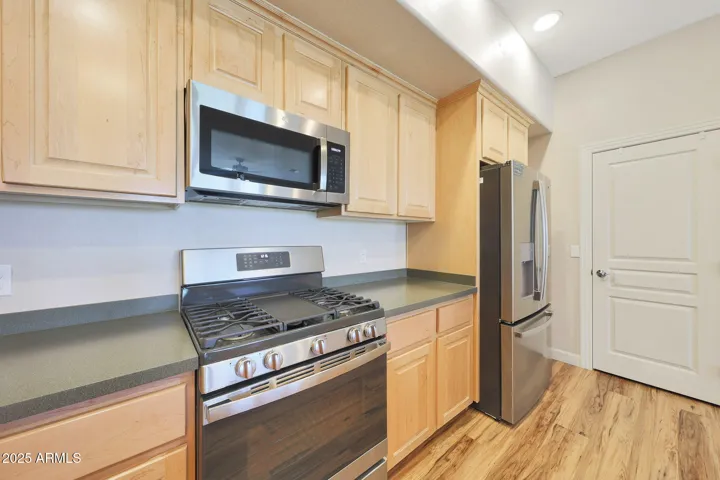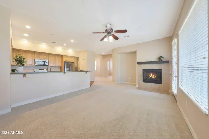 Tucked within the exclusive gates of Encore at Grayhawk, this stylish townhome offers the perfect blend of comfort, functionality, and location. The thoughtfully designed split floor plan features 3 bedrooms and 2 bathrooms, ideal for both everyday living and entertaining. Enjoy serene mountain views from the private patio, which also offers convenient access from the primary suite.