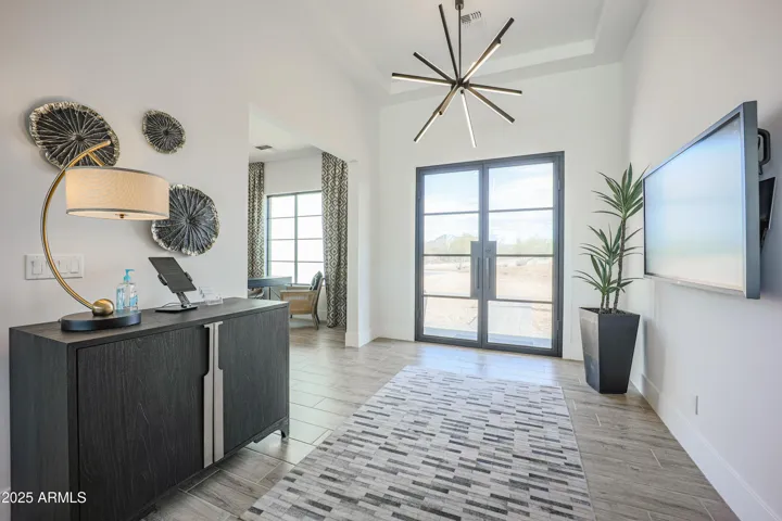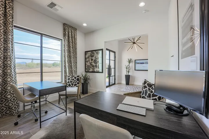 Prescott Plan. Full Spec Home Estimated Move-in Oct. 2025. 4 bedrooms plus an office/den, 3.5 baths, and high-quality finishes throughout. Spacious design includes a 47 ft. RV garage plus 2-car garage. Island kitchen with quartz waterfall countertop Sub-Zero 48” refrigerator, Wolf 36” gas range with infrared griddle, and microwave drawer. Walk-in closets in all bedrooms. The master bath offers a spacious entry shower, stand-alone tub, and double sinks. Other features include 8-foot doors, 12 ft ceilings, 90/10 drywall finish, energy-efficient spray foam insulation, 2×6 exterior framing, post-tension foundation, and paver driveway apron and walkway. Block fence included and paved road will be in prior to closing. Note: All options/upgrades subject to change. Photos are of model home