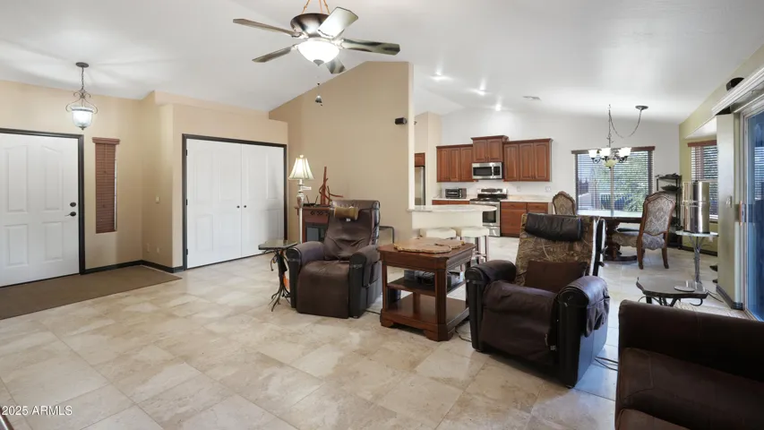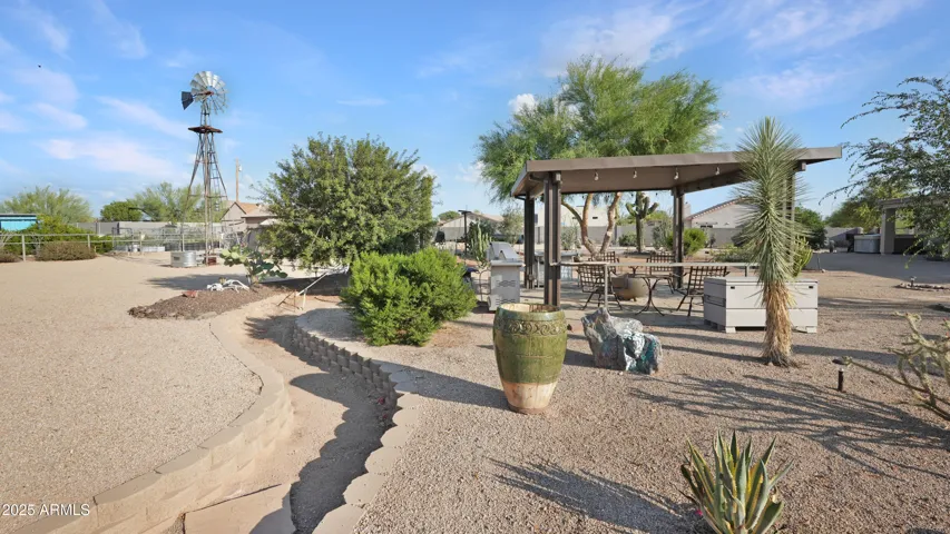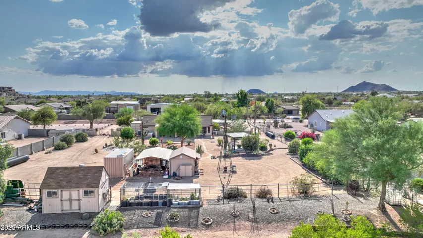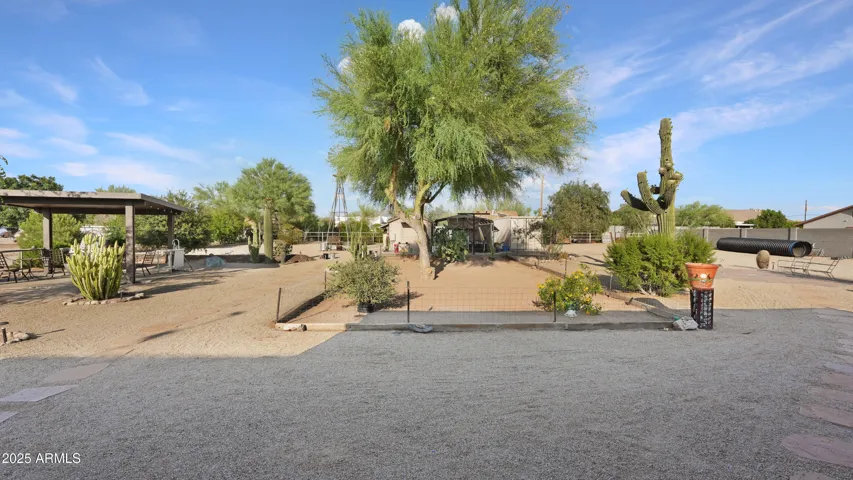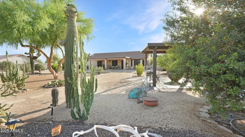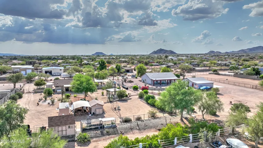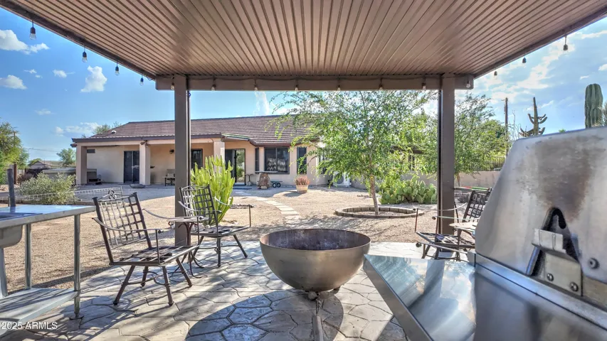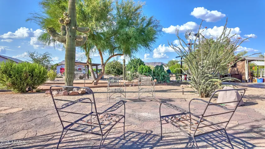 NEW PRICE ALERT!! Welcome to your private desert oasis, nestled on a spacious horse friendly 1.2-acre lot with breathtaking views of the Superstition Mountains. This well-maintained home welcomes horses (existing 14’x19′ metal carport great start for shaded stalls) and offers true Arizona living with natural desert landscaping, fruit trees, and room for all your toys –all with no HOA restrictions for RVs, Boats, and Trailers. Step inside to find tile flooring throughout, a remodeled spacious kitchen featuring an open layout, Thomasville cherry cabinets , breakfast bar, and a cozy bay-window eat-in area. The open great room provides a welcoming space for gatherings, while the primary suite includes patio access and a beautifully updated ensuite bathroom. Storage is never an issue, thanks to two Conex containers and an attached side-entry garage equipped with built-in shelving and its own mini-split system for climate control. Additional upgrades include a metal roof with a transferable lifetime warranty, metal facia, a water softener and reverse osmosis system, copper kitchen sink, security screens, wood burning firepit, insulated garage, and remodeled bathrooms that add modern comfort and style. Relax in your spa as you star gaze. This acre has room in the East back (dry wash) for all your entertaining needs – horseshoes, corn hole, even room for volleyball. Make sure to stroll through the gate, over the bridge to this area. Bridge is an ideal spot to watch the sun rise and enjoy coffee! This property offers the perfect blend of privacy, functionality, and natural beauty. Come experience the peaceful charm of desert living with thoughtful upgrades throughout.