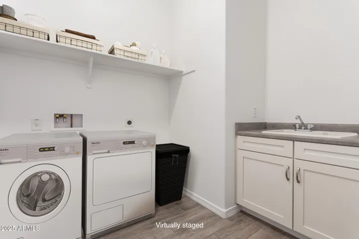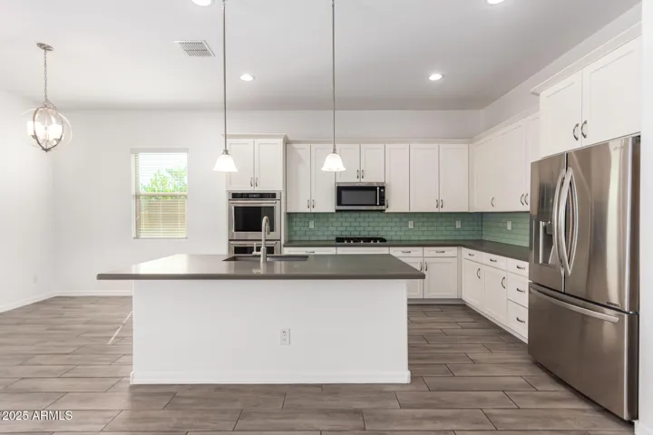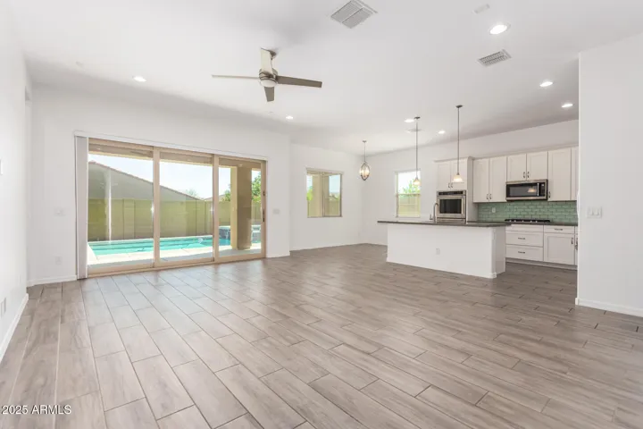 GORGEOUS single level with a POOL, 4 bedrooms with 3 FULL BATHROOMS and a 3 car tandem garage! Amazing and well cared for – like new! Interior professionally painted 6/5/25. Beautiful herringbone pattern tile in entry way. High ceilings and 3 panel telescoping glass doors provide bright cheery and open living space. Split bedroom plan. Double wall ovens and gas cooktop. Large kitchen island & walk-in pantry. Sink in cabinet in laundry room. ”Mud room” of sorts (utility room), coming in from garage. Low maintenance backyard with synthetic grass, rock and a SPARKLING POOL! Soft water loop in garage. Wired for surround sound. Exterior gas stub to set up your BBQ island/outdoor kitchen. Great for entertaining. BOTH elegant and cozy! Everything in this home flows perfectly! Come take a look!