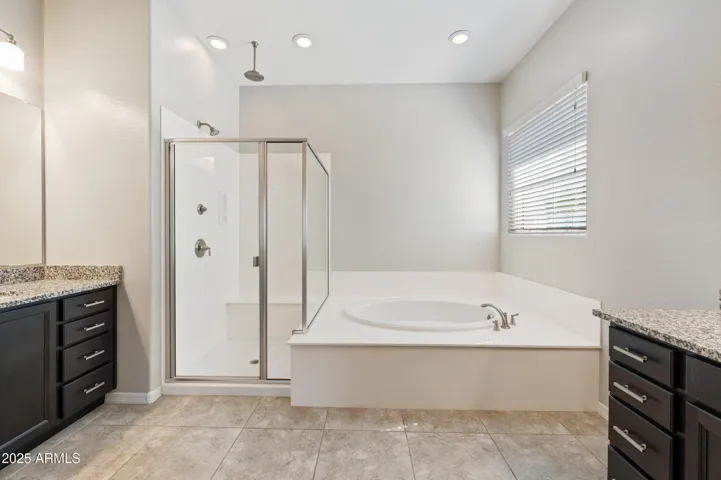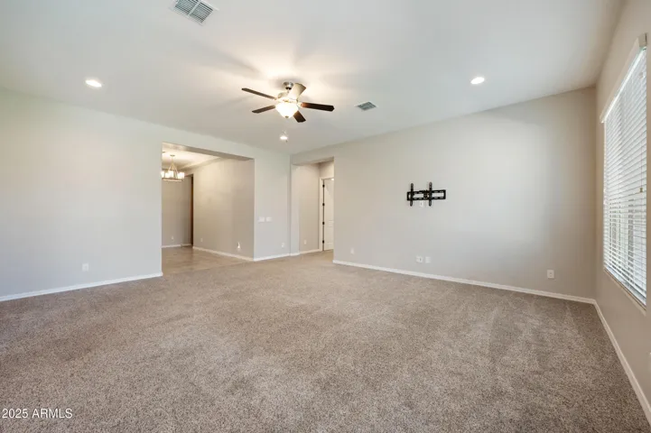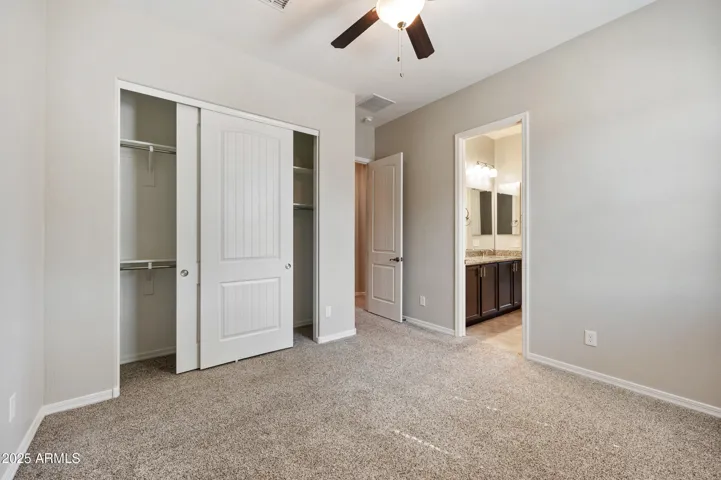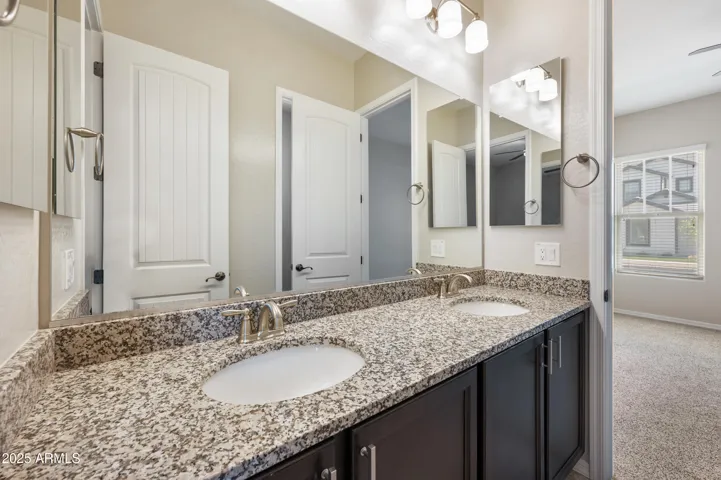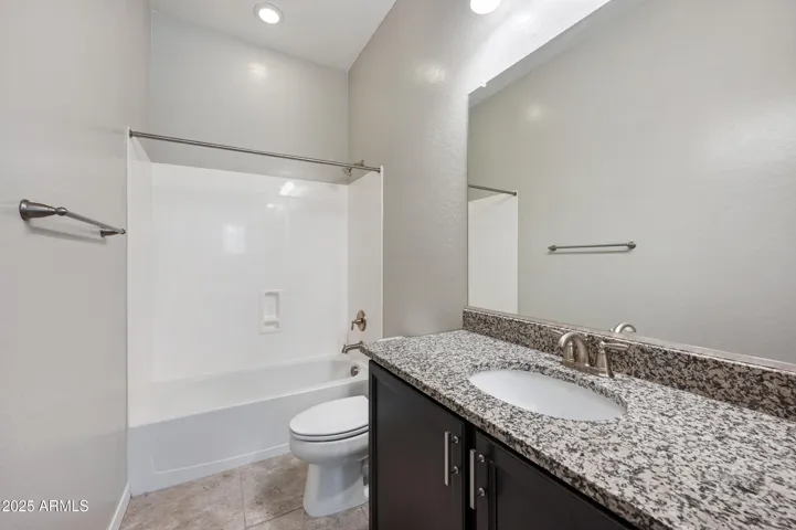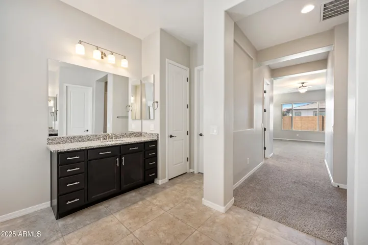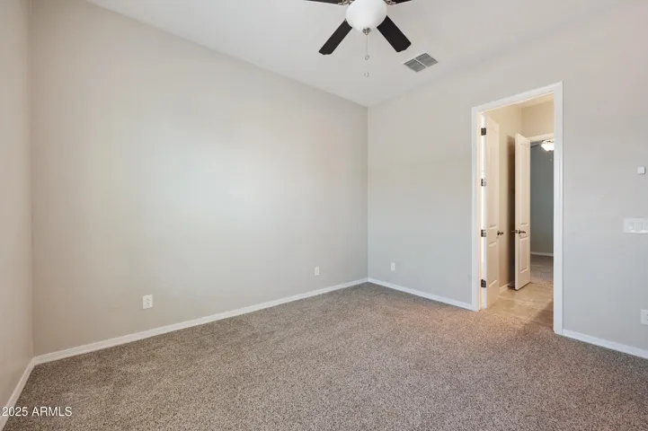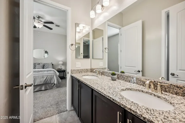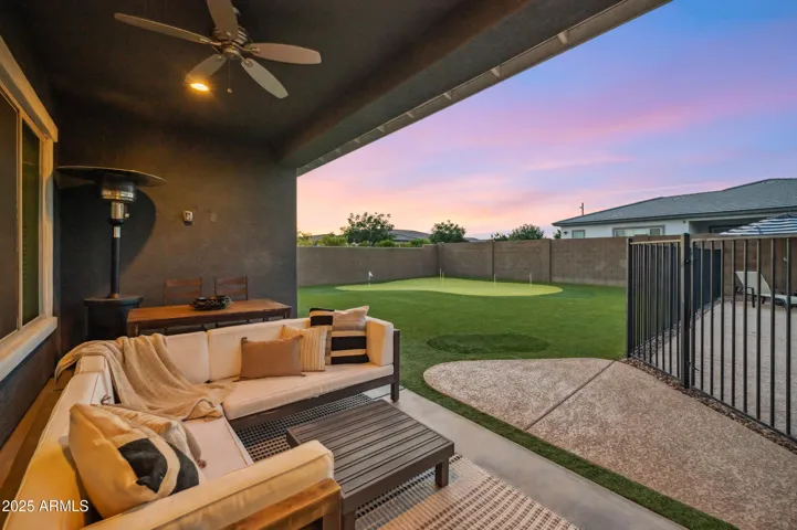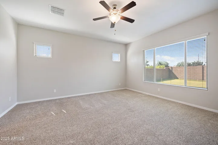 The oversized primary suite features its own double-door entry, two spacious walk-in closets, and a spa-inspired bath. A Jack & Jill bath connects two of the secondary bedrooms, while the fourth enjoys a private bath – an ideal setup for guests. A double-door den provides the perfect space for a home office or bonus room. Step outside and discover your own private retreat: a sparkling pool set in a spacious, low-maintenance backyard designed for both entertaining and relaxation. Whether gathering around the water with friends or simply enjoying Arizona’s sunshine in peace, the outdoor living space is just as inviting as the inside.
