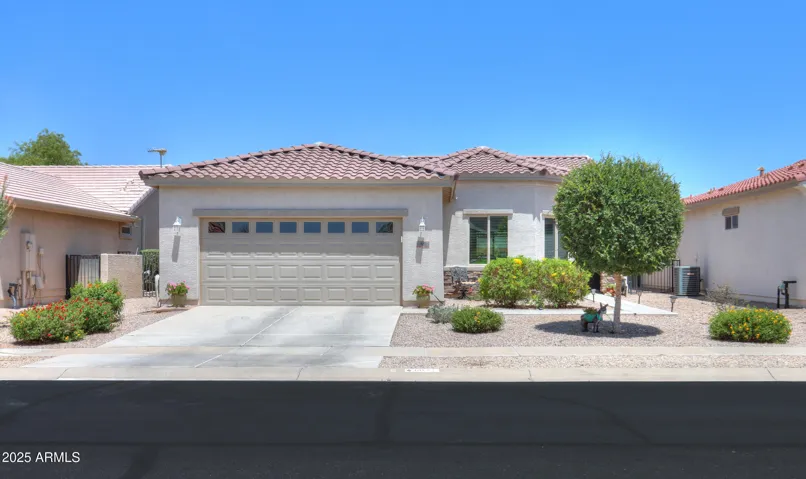 **Beautiful Bonita Floorplan in Mission Royale!** Pride of ownership is overwhelming in this stunning 2-bedroom + den, 2-bath home featuring a spacious split floorplan and upgraded finishes throughout. Tile flooring flows through the main living areas, with luxury vinyl plank in the bedrooms for added comfort. The inviting kitchen boasts granite countertops, a large island, stainless steel appliances, Water softener and RO system, and rich alderwood staggered cabinetry—perfect for entertaining!