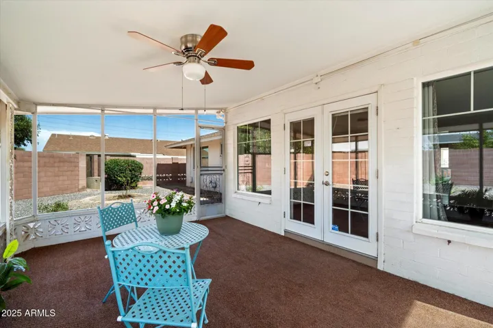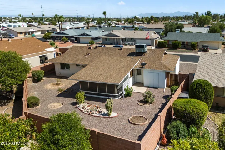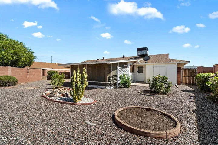 PRICE REDUCED! Charming 2-bedroom, one bathroom home in the heart of the vibrant age 55+ adult community of Sun City. This home is spacious and offers multiple areas to relax in including the Arizona room, a screened in rear patio and an inviting front patio area all of which are perfect for entertaining family and neighbors. There is additional storage in the utility /golf cart room as well as extra storage space on the side and rear area of the home, The yard is completely fenced for privacy and is ideal for pets. The windows, flooring, bathroom, and air conditioner have been updated. This home is perfect as a year-round residence, a rental property or a lock and leave seasonal home. Enjoy all that Sun City has to offer including 7 recreation centers, 8 golf courses, 2 bowling centers, Sun Bowl, Viewpoint Lake and a wide variety of social groups and activities. It is conveniently located near entertainment, shopping, dining, and medical facilities.