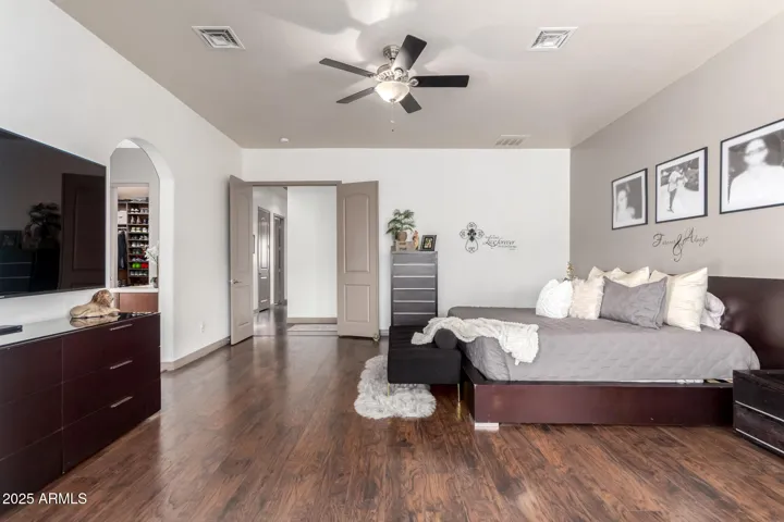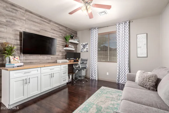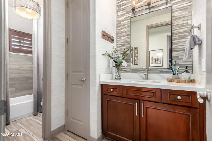 The metallic epoxy 3-car garage features custom cabinetry and a workbench, combining function with sleek design. With numerous upgrades in every part of the home, this home perfectly blends luxury, comfort, and practicality in one of the area’s most desirable gated communities.