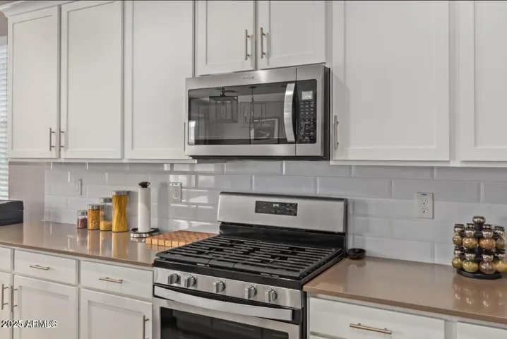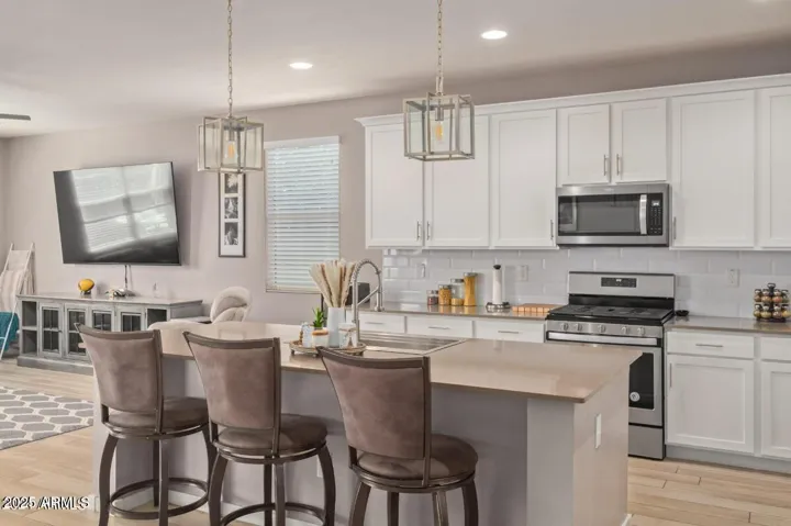 Looking for a new place to make home? You’ve found it! This 4-bed, 3-bath and 2-car garage offers comfort and convenience. Inviting hallway ushers you to the captivating open layout enhanced with tall ceilings, a neutral palette, chic light fixtures, wood-plank tile flooring, and sliding glass doors that merge indoor and outdoor living. The kitchen includes SS appliances, granite counters, a subway tile backsplash, recessed lighting, a pantry, ample white cabinetry with crown molding, and an island with a breakfast bar. Primary retreat has plush carpeting, a full ensuite with dual sinks, and a walk-in closet. Enjoy alfresco dining in the tranquil backyard with a covered patio, pavers, and green turf. This highly maintained residence is the one!the one! Optional hot tub. Ask for details.