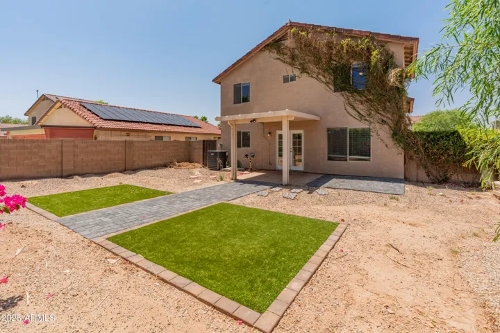 Back on market after buyer changed direction. Motivated seller. Home sold as-is with $27K owned solar to be paid off at closing for lower bills and long-term savings. New HVAC in 2022, vaulted ceilings, central fireplace, and flexible living space. Separate BR downstairs plus 3 upstairs, with loft converted into a 4th BR for added versatility. Low-maintenance turf front and back, extended patio, and paver areas with room to make it your own. Move in now and update on your timeline while building equity or use as a rental in a desirable, fast-growing neighborhood. Property qualifies for conventional or cash offers only.
