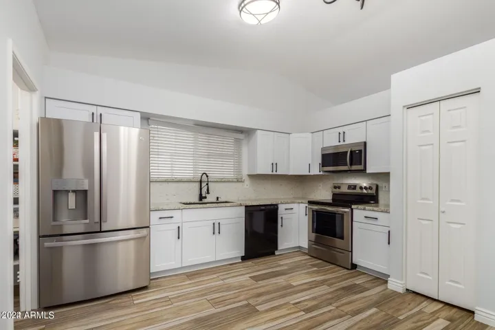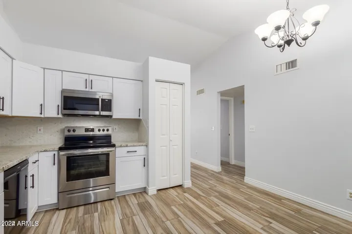 HALF OFF FIRST MONTHS RENT SPECIAL! INQUIRE FOR MORE DETAILS! Impressive floor plan with ample space in all the right places! This turnkey home is primed for immediate occupancy. Vaulted ceilings amplify the spacious ambiance throughout. Recently renovated between 2019 and 2022, this residence boasts a modern aesthetic. Bright white shaker cabinets, an oversized sink, and new appliances adorn the kitchen, complemented by granite counters, contemporary backsplash, and updated lighting. Both bathrooms have undergone stunning modern makeovers. Enjoy enhanced energy efficiency with new double-pane windows installed in November 2022. Planked tile flooring mimics the elegance of wood, while plush carpeting adds comfort to the bedrooms. Take advantage of the community pool for leisurely relaxation.
