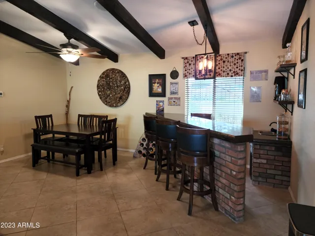 Classic Arizona block ranch house minutes from Westgate. No HOA. In excess of 17000 sq ft lot, wood burning fireplace, full wet bar, vaulted ceilings with solid core wood beams and new roof. Through out there are large windows, wood blinds, updated appliances, culture marble in the bathrooms, 2 living rooms, 2 offices, bar and Arizona room. Front yard has mature landscape, wrought iron fence with block columns, garden on the north, and stretched front patio. Back patio spans the backyard with a Arizona room. 20×30 ft pool that’s 12 ft deep fully redone surrounded by artificial grass. Electrical panel is completely upgraded, 100 amp subpanel added near the RV space. Tasteful custom build with modern amenities ready to accommodate & entertain. Owner is a licensed RE agent