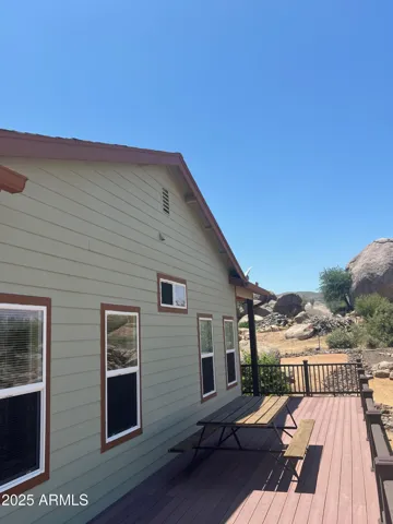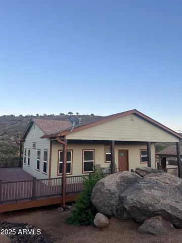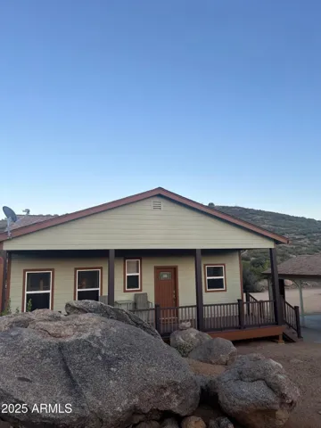 This is the one. If your tired of the heat and want to live in a lovely community with incredible night skies then you have found your place. This can be your primary or retirement home or an investment rental. Its a cozy and beautiful 2 bed room 2 bath that sits on over an acre with a wrap around porch and an open concept living area with a spacious kitchen that has granite counter tops and and custom cabinets. Indoor laundry room as well as premium interior doors and a brand new roof. Come enjoy the cool summer breeze and take in stunning mountain and boulder views. Recreational activities are near by with Prescott National forest only 1/2 hour away and mayor shopping areas at 1 hour distance. Dont let this one get away.