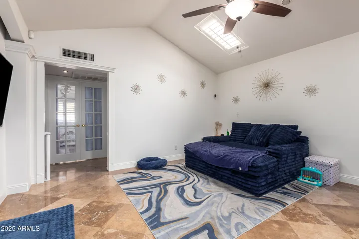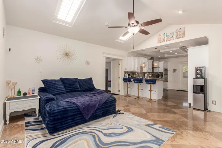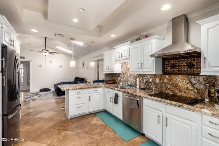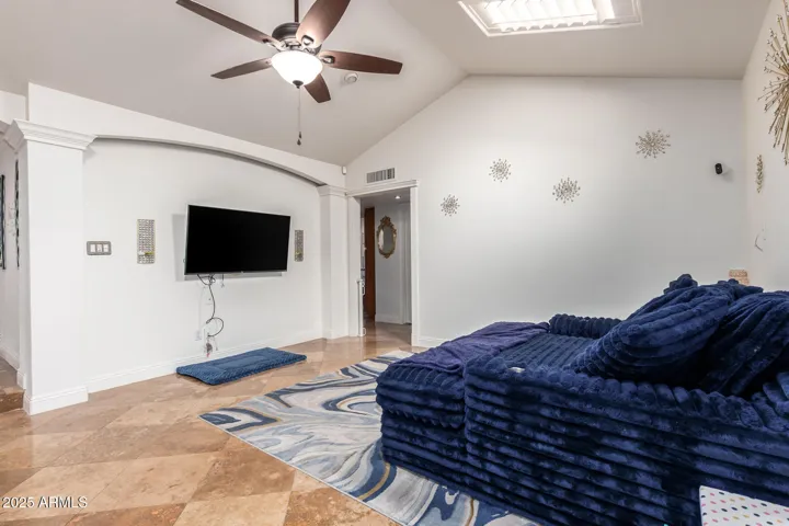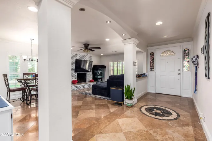 Seize the chance to own this 5-bedroom residence on a peaceful cul-de-sac! You’re welcomed by a 2-car garage, charming brick accents, & a front patio that sets an inviting tone. Inside, you’ll find a serene living room w/ vaulted ceilings, skylights for ample natural light, & durable tile flooring. The family room has plantation shutters & a cozy fireplace for relaxing evenings. Cook delicious meals in the kitchen, equipped w/ granite counters w/ a matching backsplash, crisp white cabinetry w/ crown moulding, pendant/recessed lighting, SS appliances, a pantry, & a peninsula w/ a breakfast bar. The main bedroom includes a private bathroom w/ make-up vanity & a walk-in closet. The backyard features a covered patio, pavers, pristine artificial turf, & an RV gate. Don’t miss out on this gem!