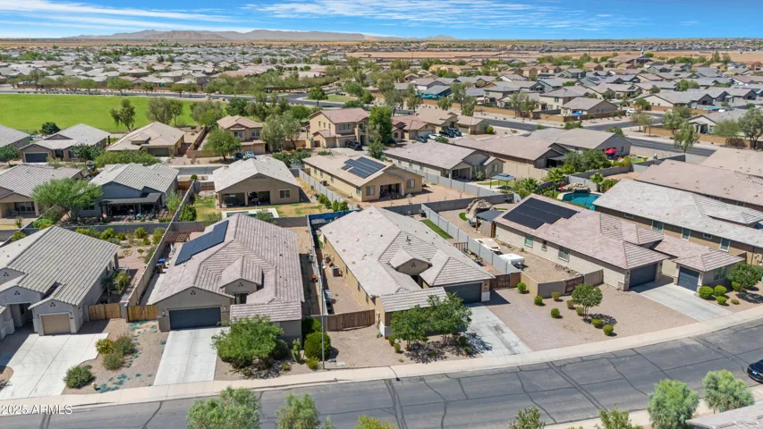 FRESHLY PAINTED INTERIOR & $5k SELLER CONCESSIONS!! This beautiful home built in 2019 has the space you need all on ONE LEVEL w/an amazing backyard oasis! The oversized lot boasts a sparkling POOL w/ a WATERSLIDE rock feature, TWO RV GATES, a large area of artificial GRASS,& a hand painted MURAL! There’s plenty of room for all your projects w/ the huge side yard & 3 CAR GARAGE w/separate bay! Inside you’ll find 4 SPACIOUS BEDROOMS & a DEN w/a barn door that could be a 5th! 3 of the rooms have WALK-IN CLOSETS! The house is clean & MOVE-IN READY w/ NO CARPET! The gorgeous kitchen is loaded w/ an abundance of upgrades such as DOVETAIL, SOFT CLOSE, 42 INCH cabinets, a LARGE PANTRY, GRANITE counters, & UNDER CABINET LIGHTING. Other cool home features include a premium SOFT WATER/RO system, SURROUND SOUND throughout, an automated pool system controlled from your phone, a wide entry hallway, a master bedroom walkout, a cul-de-sac street, and a North/South facing property!! The beautiful Sorrento Community has a lake with children’s playground & splash pad, walking/biking paths, and tennis courts! Just a quick drive to Maricopa’s City Hall, Community College, elementary schools, Walmart and Library/Cultural Center!
