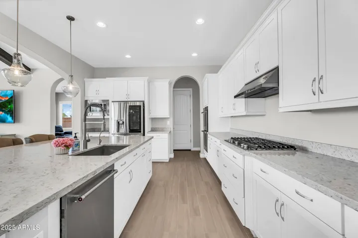 From the moment you arrive, the property makes a statement. Inside you’ll find elegant beams, soaring ceilings, and an expansive open layout create a warm yet elevated feel throughout. The gourmet kitchen is the heart of the home, featuring a gas cooktop, oversized island, and high-end finishes—perfect for both everyday living and entertaining. The spacious primary suite is a true retreat with a spa-like bath that includes a soaking tub, walk-in shower, and dual vanities, completely separated. With 4 bedrooms, 3.5 bathrooms, and multiple flex spaces, there’s room to tailor the layout to your lifestylewhether that’s a home office, playroom, gym, or guest space.