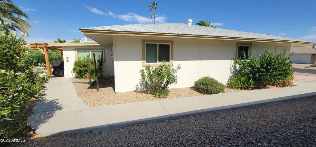 Look! Andersen windows, owned solar (fully paid), new roof, new HVAC w/ an air purifier – those big ticket items you don’t have to worry about! The owned Solar panels (no lease, no loan) produce so much electricity that APS buys it – $$ in pocket! This is a sweet, cozy 2 bedroom home w/ an expanded Arizona room that opens to the lovely back patio w/ pergola, mature citrus trees, & a living privacy hedge + a concrete accessibility path around to the driveway. Everything has been very well maintained by top service providers like Parker & Sons w/ records, warranties & a home warranty for you! Ride the golf cart to Rec Centers, grocery, pharmacies, hospital – all nearby. Located on a quiet, non-thru street! Upgraded exterior paint, Andersen windows & new doors add durability & curb appeal! Golf cart comes with the garage – woo hoo, now you’re cruising in style! So does a HOME WARRANTY! Yay! See the APS utility bill in photos for solar production, Ka-ching$! SCW Active Adult Community has 7 golf courses, 4 recreation centers, a state-of-the-art bowling center, a private library, performance theater, and countless other amenities and activities. From GenX to the Greatest Generation – and everyone in between – Sun City West offers something for everyone’s hobbies – woodshop, metal shop, automotive restoration, silversmithing, lapidary, ceramics, stained glass, fine art & so much more – multiple fitness centers, theater, and over 90 clubs.
