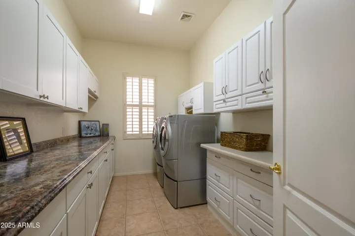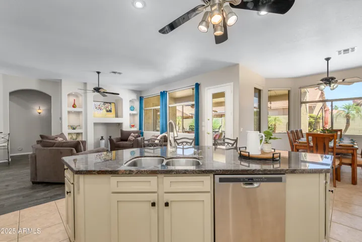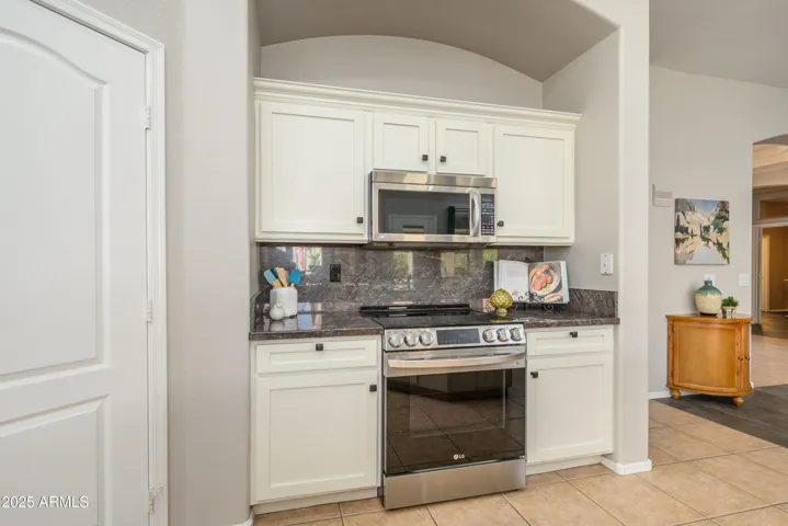 What a great place to call home! Gorgeous inside & out. You will be welcomed by stunning lead glass double doors, a friendly foyer, & an open concept floor plan w/ windows galore w/ plantation shutters. Enjoy the large kitchen w/updated beautiful white cabinets, contrasting granite countertops, newer s/s appliances, an island w/ breakfast bar, a walk in pantry, & an abundance of counter space & cabinets. The adjacent dining area has plenty of room & inviting views of the awesome back patio. This model flows into a great room featuring a lighted accent wall, new LPV flooring & your own private entertainment bar featuring granite, cabinetry, & refrigeration. The extended covered patio w/ pavers has a heated spa, & room to gather. Electric car charging in garage & cabinets. 2.5 baths!