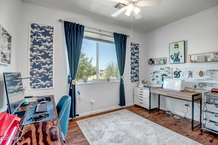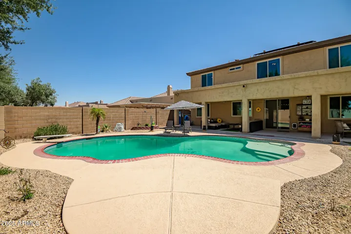 This Palm Valley stunner has it all—style, space, and sophistication! From the manicured landscaping to the stone-accented façade and 3-car garage with RV gate, this property exudes curb appeal. Inside, you’ll be impressed with all the modern touches throughout. Relax by the fireplace in the cozy family room. Gather and entertain around the exceptionally curated bar and bonus sitting room. Whip up meals in the chef’s dream kitchen. Dedicated den with built-in desks is perfect for those stay-at-home work days. Retreat to the oversized primary suite to unwind in spa-like bath. Massive backyard with sparkling dive pool and money saving OWNED SOLAR seals the deal on this meticulously maintained gem. It truly is a one-of-a-kind that will make you always want to be home!