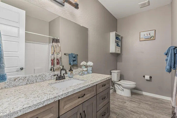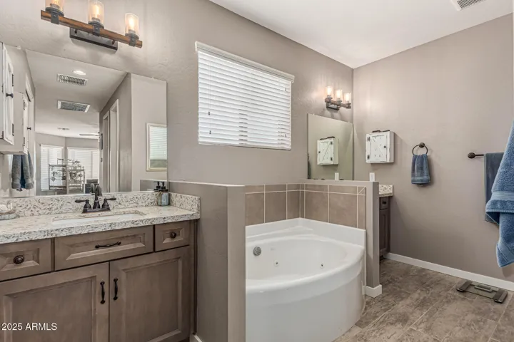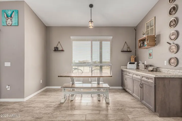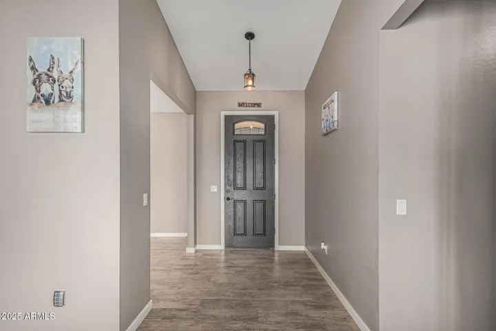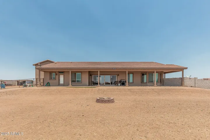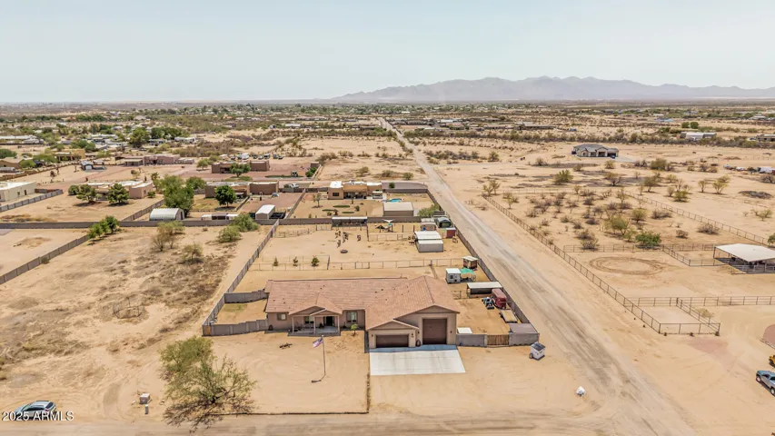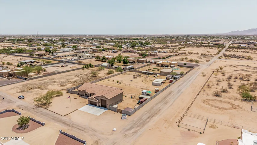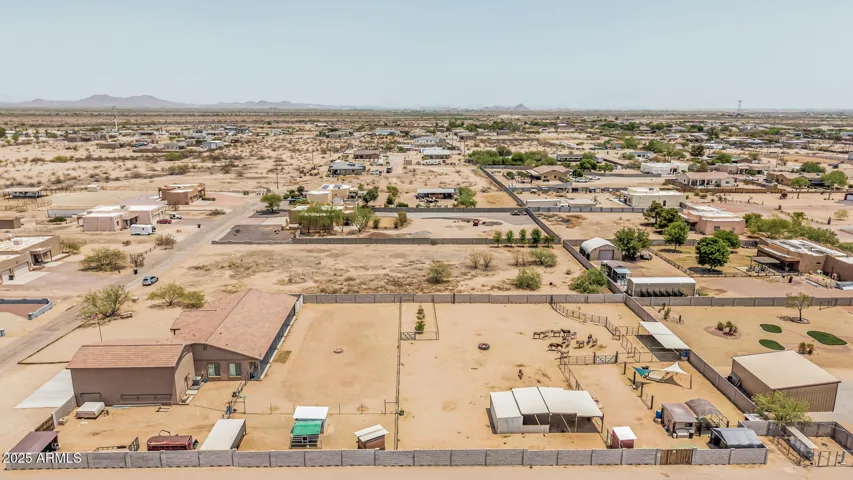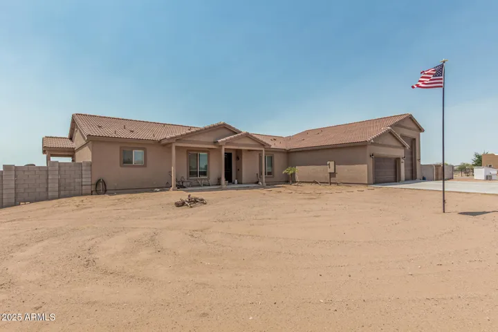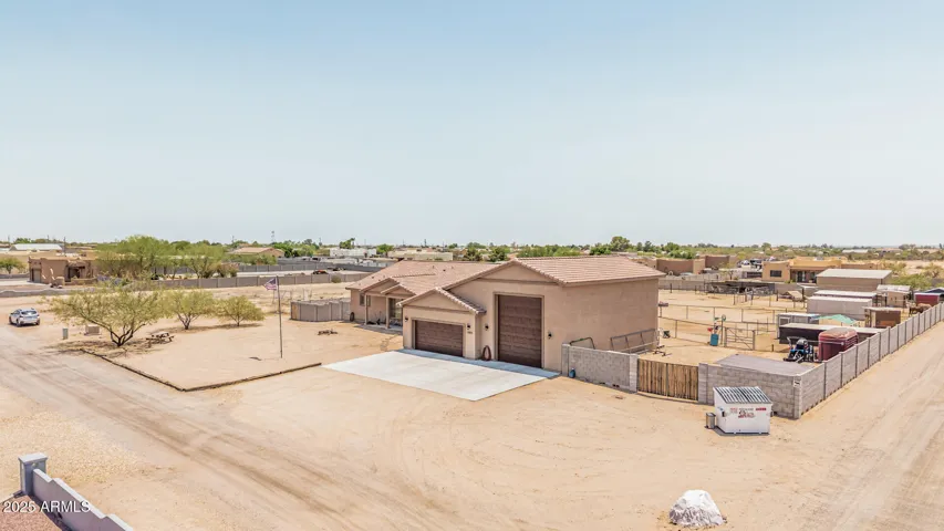 Stunning 3 bed, 2.5 bath custom home on 1.47 acres in Wittmann. This beauty features plank tile flooring, tall doors, and a spacious split floor plan. The luxurious primary suite offers dual vanities, jetted tub, walk in shower, and private retreat to a private yard. The gourmet kitchen is a chef’s dream with custom soft close cabinets, pull-out drawers, quartz counter-tops, large island. Formal dining room. Huge laundry room with a pet shower. Oversized garage plus RV garage. 2 RV gates, and horse stalls out back. There is a hay shed and chicken coop. Low maintenance landscaping, tile roof, and 2 A/C units. Washer and Dryer stay plus 2 additional hook ups. No HOA. Mountain views.