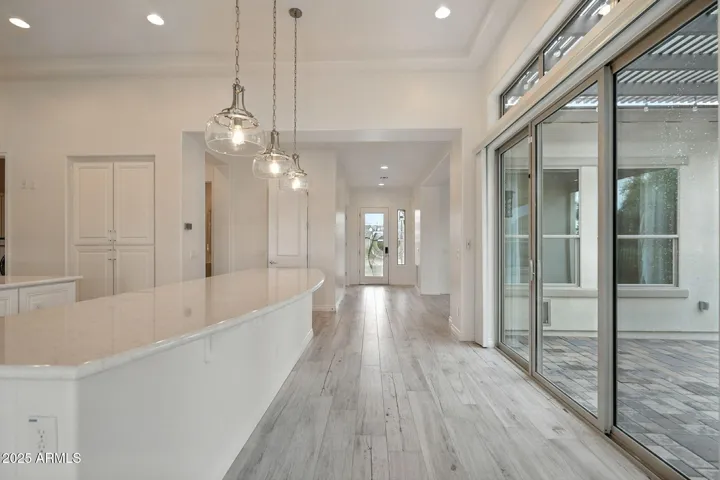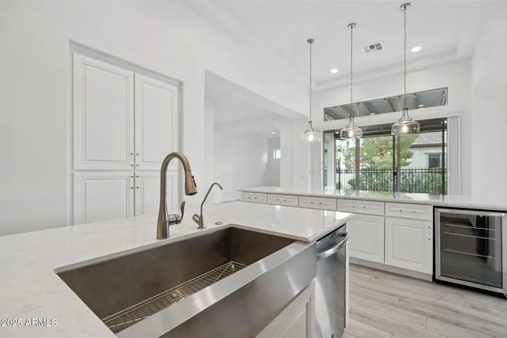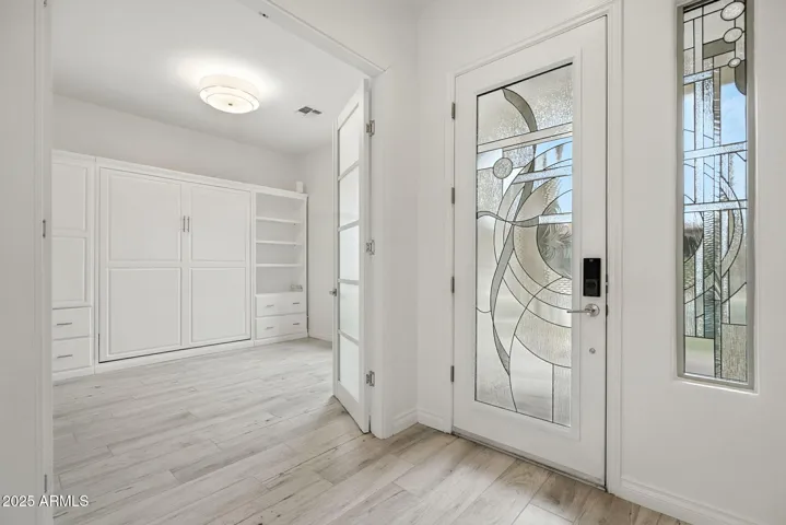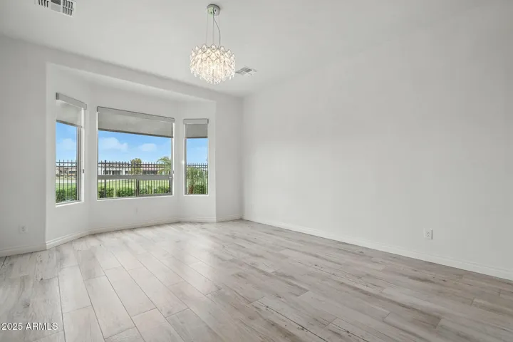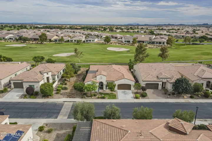 Stunning Tarragona plan on the golf course at Trilogy at Encanterra. This home features 2 bedrooms, a den with a custom built-in Murphy bed, and a secret room off the primary suite. The space in this home is incredible! The backyard is perfect for relaxing or entertaining with a heated pool, lush turf grass, and rolling patio sun shades for privacy and comfort. The upgraded primary bath offers a luxurious steam and rain shower. Enjoy upgraded tile throughout, fresh interior paint, new light fixtures, and a brand-new epoxy garage floor. Built-in garage cabinets provide excellent storage. Modern updates and resort-style living—move-in ready and sure to impress.
