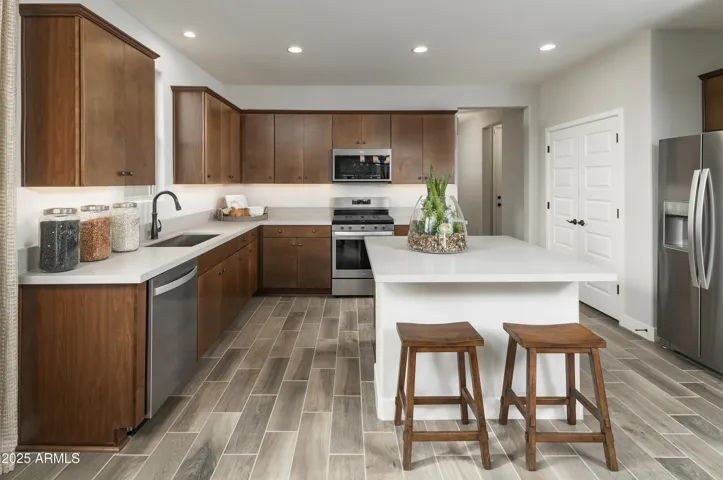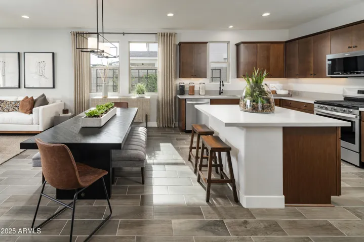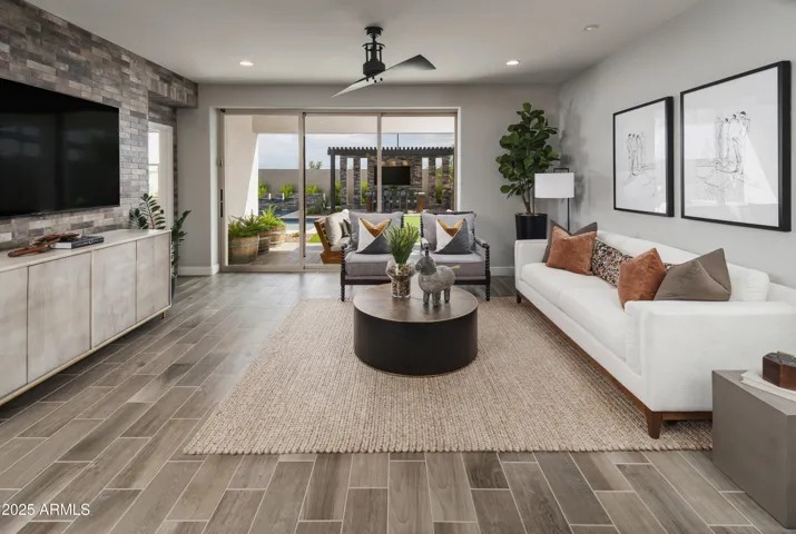 Model home offering full furnishings! Ready for immediate move-in! This oversized home site overs beautifully crafted design features that are sure to impress. The single level Chapin Spanish floorplan offers timeless elements while implementing modern finishes. The home offers a free-flowing layout with a gourmet kitchen, and the great room/living area offers a designer faux wall adding to the charm of the home. As you step outside you can enjoy an incredible backyard complete with a pool and outdoor kitchen! The primary suite provides great space and a dual sink vanity, and walk-in closet. The additional bedrooms are sure to accommodate your guests or family. Take advantage of this opportunity! It won’t last long!