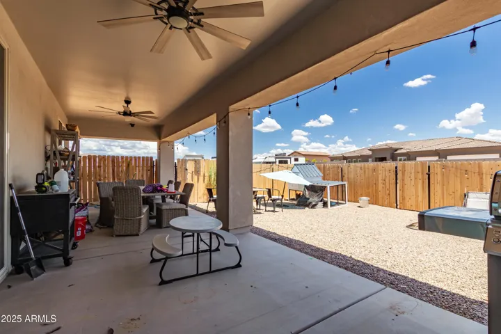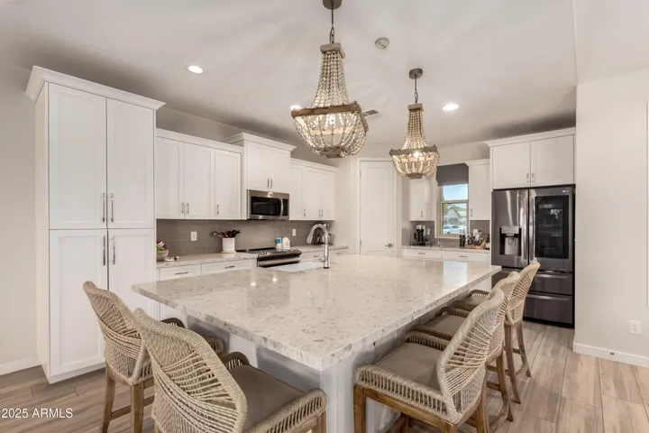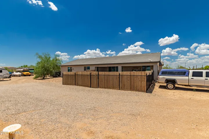 Own a piece of the country with this stunning Surprise home! This beautifully upgraded 4 bedroom 2 bath single level home on an acre checks all of the boxes! Open great room floorplan with lots of natural light, neutral color pallate and upgrades throughout. Kitchen has upgraded cabinets, quartz counters, stainless steel appliances and a huge island. Split primary bedroom with spa like bathroom has quartz counters, separate soaking tub, tiled shower and a walk in closet. Three generous secondary bedrooms on the opposite side of the home. Shutters throughout. Covered front porch allows for extra seating & entertainment area. No HOA, two RV gates and a huge back yard creates many possibilities! All of this plus mountain views, gorgeous sunsets and starry nights await you! Don’t delay!