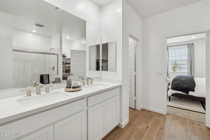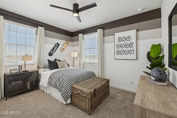 2-Story ‘SMART HOME” features the Primary Bedroom on the 1st floor, along with a guest bed and full bath! Enjoy the loft on the 2nd floor for gaming/teen room/content creator space etc… plus two additional bedrooms! This home does not fall short from perfection. The main living area boasts natural light with 9-foot ceilings throughout! Kitchen is stunning with white cabinets that complement the quartz countertops. HUGE kitchen island. Kitchen stainless steel appliances, blinds, garage remote — Front yard landscaping is included!!!!