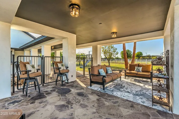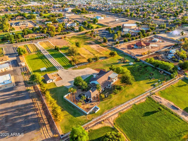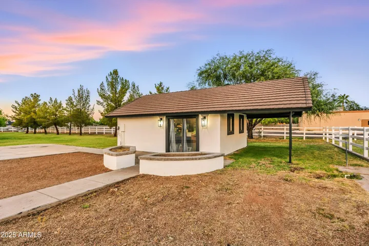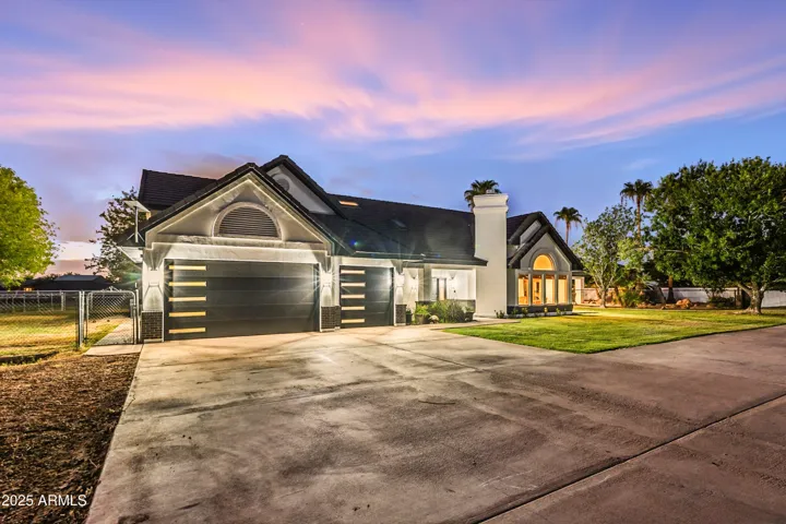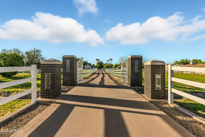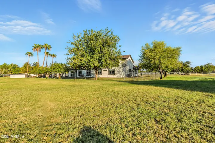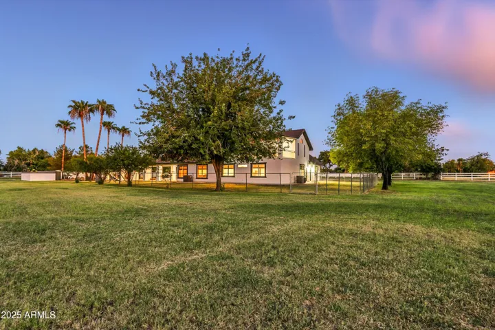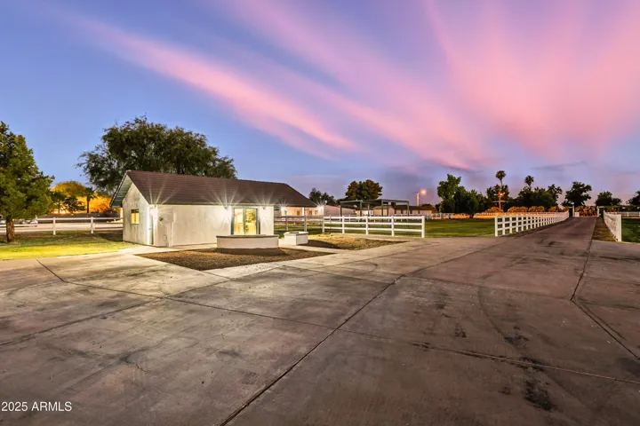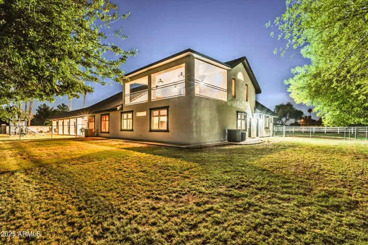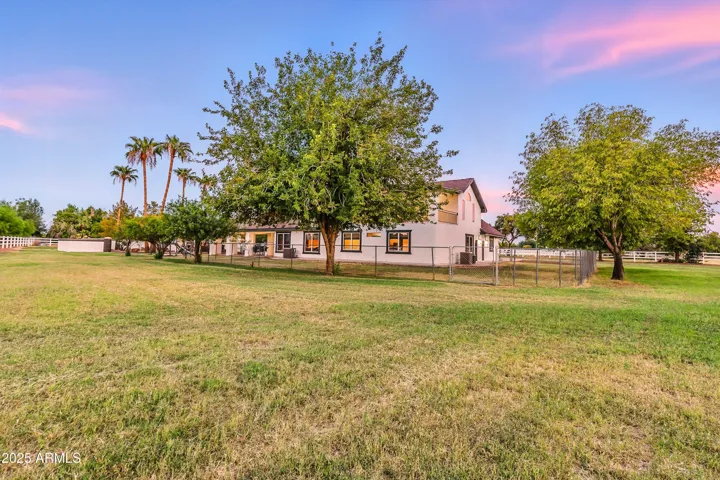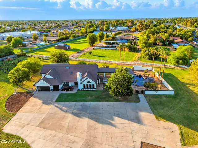 5.44 acres of irrigated land in Gilbert! As soon as you turn onto the long white picket lined driveway, you’ll know, this one is different. This 4bed, 4bath custom estate w/ a grand spiral staircase, fireplace & formal living & dining room offers 3,489 sq ft, fresh interior/exterior paint, new bedroom carpet & oak hardwood flooring throughout. The entire upper level is a private primary suite with a laundry dumbwaiter & huge balcony overlooking your land. Enjoy a breezeway-accessed pool + spa, detached 20×24 office & total privacy with no HOA. With a splittable parcel, zoning allows equestrian use, multigenerational living, & more. Experience rural charm just minutes from Gilbert’s shopping, dining, and freeway access. A rare find in one of the East Valley’s most desirable areas.