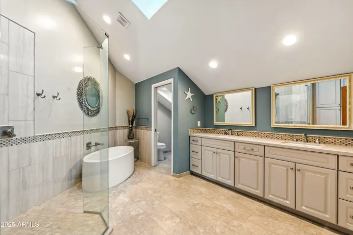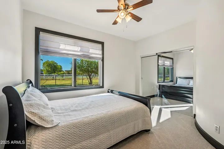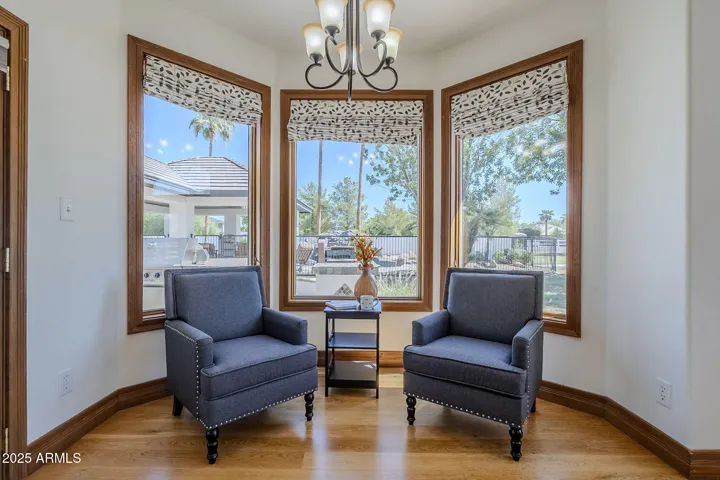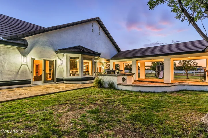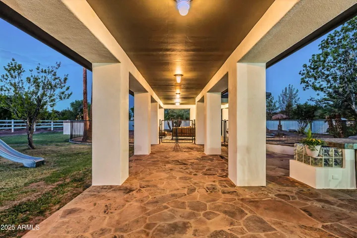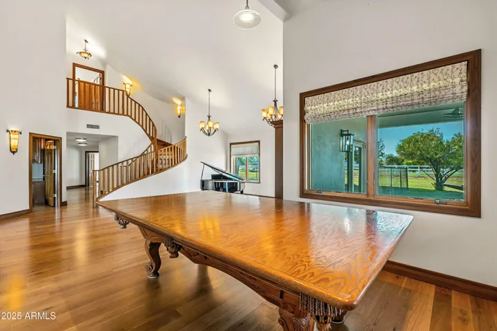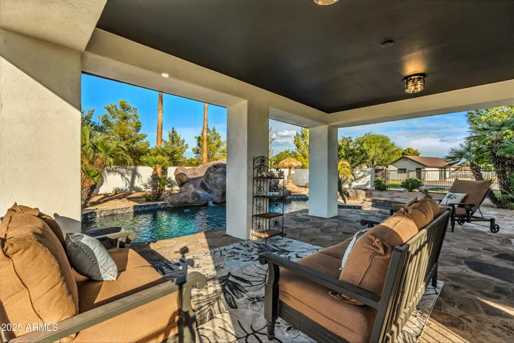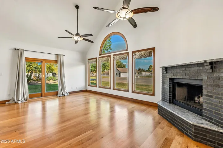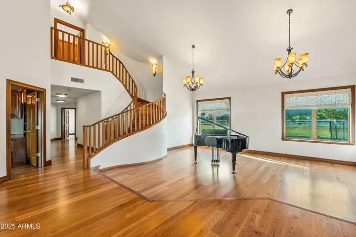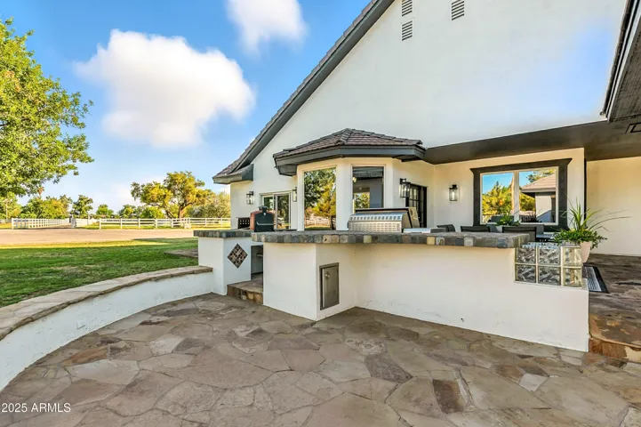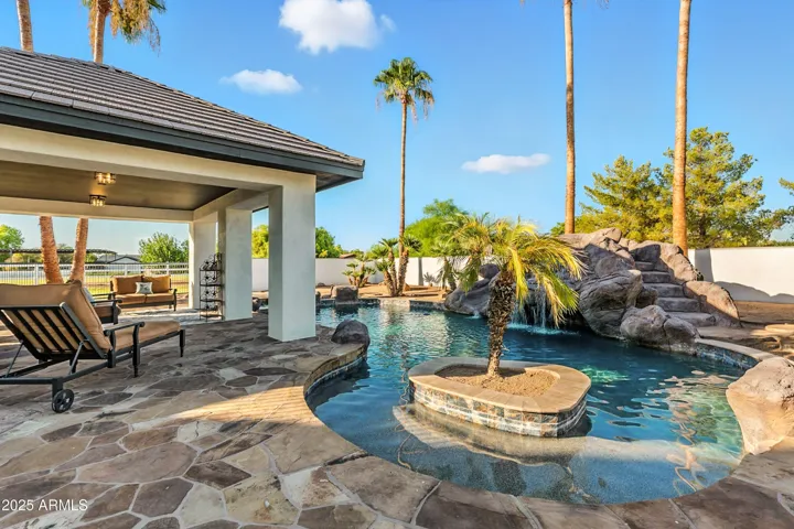 5.44 acres of irrigated land in Gilbert! As soon as you turn onto the long white picket lined driveway, you’ll know, this one is different. This 4bed, 4bath custom estate w/ a grand spiral staircase, fireplace & formal living & dining room offers 3,489 sq ft, fresh interior/exterior paint, new bedroom carpet & oak hardwood flooring throughout. The entire upper level is a private primary suite with a laundry dumbwaiter & huge balcony overlooking your land. Enjoy a breezeway-accessed pool + spa, detached 20×24 office & total privacy with no HOA. With a splittable parcel, zoning allows equestrian use, multigenerational living, & more. Experience rural charm just minutes from Gilbert’s shopping, dining, and freeway access. A rare find in one of the East Valley’s most desirable areas.