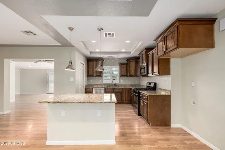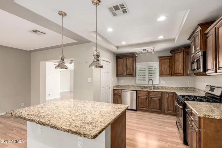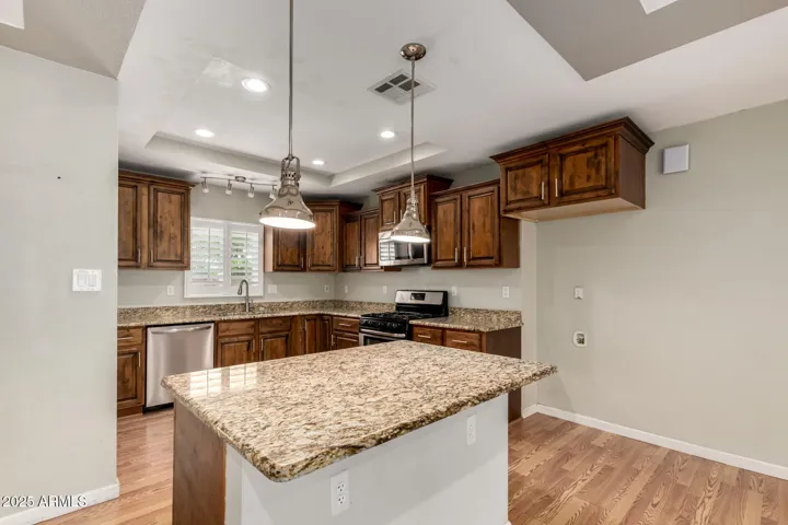 Open & light charming home in Arcadia. This 3 bedroom + Den + formal dining area or bonus room/1.75 bath home features an open floor plan & upgrades T/O. Kitchen features upgraded knotty alder cabinets, stone slab counters, stainless steel appliances, pantry & island w/breakfast bar w/pendant lighting. Upgraded bathrooms w/stone shower surrounds & floors. Roomy inside laundry room w/sink. Lush backyard w/pool, grass play area & paver patio great for BBQs. Enclosed garage. Great location w/top rated schools. Take advantage of proximity to all that Arcadia has to offer. Located a few minutes from airport, major freeways, Biltmore, great golf, Old Town Scottsdale, Fashion Square & Arcadia hotspots like O.H.S.O., LGO, Postino, The Henry.