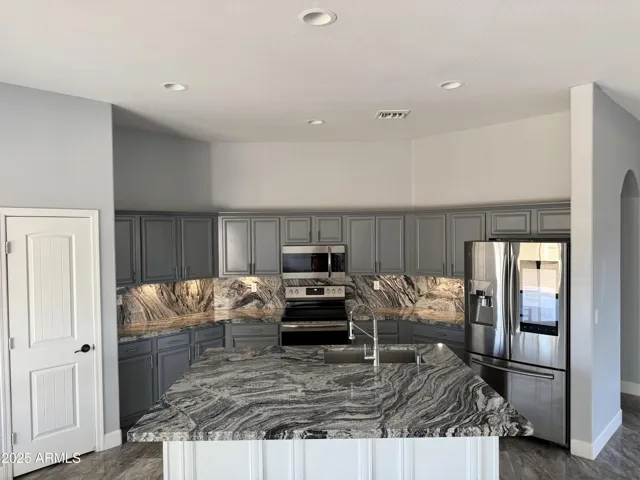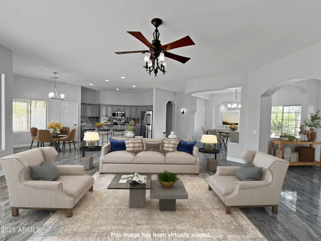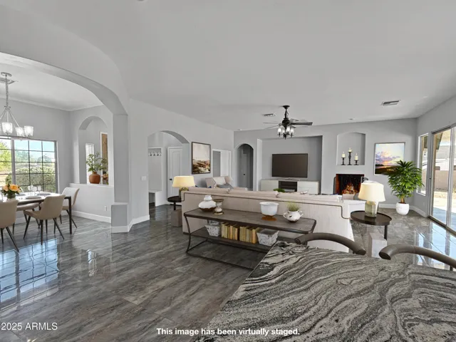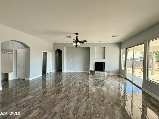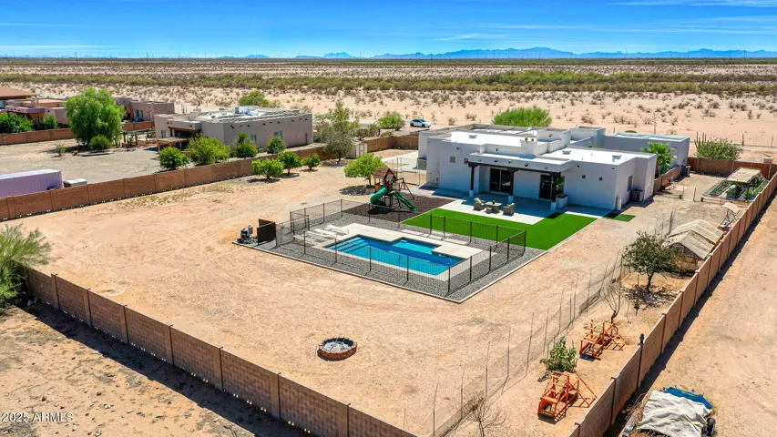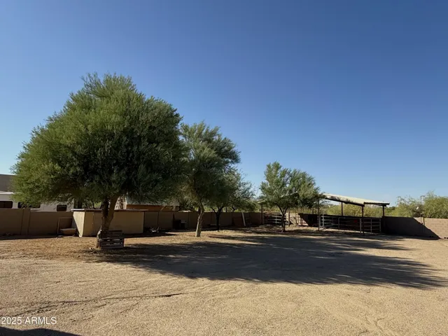 Go West, they say. Here is your chance to own a true home on the range without the restrictions of an HOA. This fully enclosed one acre lot offers horse amenities and RV power hookups, giving you the freedom to live the way you choose. Whether you bring the horses, park the RV, or simply enjoy the open Arizona skies, this property is what the West is all about. This modern Santa Fe style home blends comfort and character with 4 bedrooms, 3 baths, a kitchen made for gathering, a formal dining room, and a primary suite that feels like a retreat. The 3-car garage has an EV outlet, and 50 solar panels keep the lights on year-round. Out back, a full-length covered patio looks over a one-acre lot with 2 horse stalls and a 220V hookup for your RV. Seller says ”Bring me an offer!”