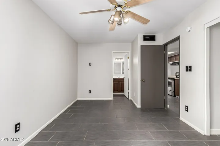 Beautiful move-in ready home! Discover an inviting living room that seamlessly flows into the dining area, complete with sliding glass doors that open to the back patio. Fresh paint, elegant tile flooring throughout, ceiling fans, and abundant natural light enhance the warm, welcoming atmosphere. The kitchen has stainless steel appliances, and plenty of cabinet space. In the sizable primary bedroom, you will have a private bathroom for added comfort. The standout features is the fully equipped guest’s quarter with it’s own bathroom, kitchen, closet. and separate exit. Big back yard with a covered patio too! Don’t let this one slip by! Great location near lots of dining, shopping, and entertainment. With acceptable offer, seller is offering concessions to help with buyer’s closing costs.