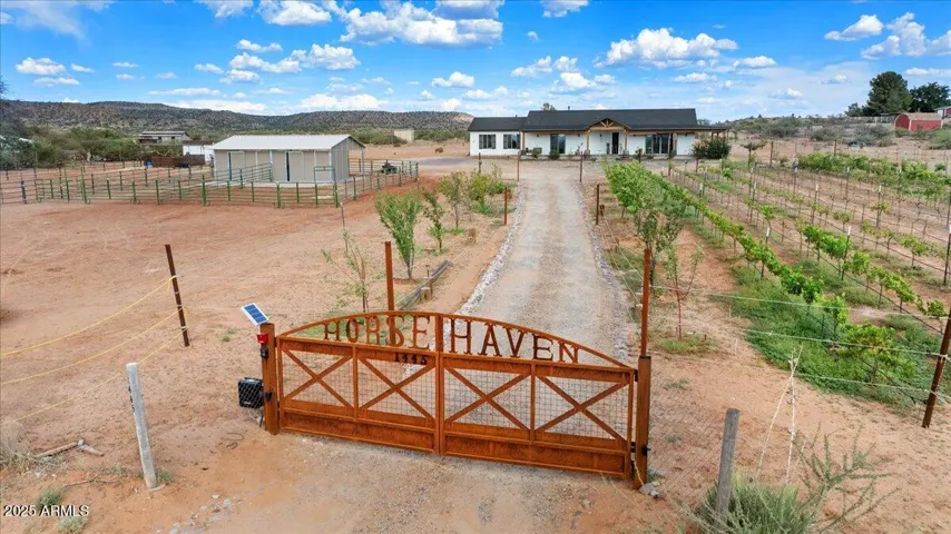 Did you know that seller concessions can mean a much smaller mortgage payment? Use them toward a Temporary Rate Buydown to lower your interest rate at the beginning of your loan. Welcome to Horse Haven! A sprawling 3+ acre ranch in Cornville, AZ just minutes from Sedona with its own private organic vineyard! The fully fenced in, level lot features a brand new top-of-the-line barn for your horses with two additional stalls and a spacious arena. In addition to the many fruit trees – 8 trees have been planted for shade on the property. See additional remarks… Drip irrigation fed by two storage tanks (one 2,500 gal and one 500 gal) water the organic vineyard that has never been sprayed with pesticides. An expansive covered porch invites you to relax with a glass of your very own organic wine. Upon entering the 3 bedroom 2.5 bath contemporary farmhouse, you are greeted with an abundance of natural light, 10 ft high ceilings and an open floor plan. Stunning kitchen opens to the dining area and living room. The eat-in kitchen features all stainless steel appliances, granite countertops, gas stove, work area with desk, walk-in pantry and a breakfast nook with a slider to the front porch. Primary suite offers an en-suite bath with a double vanity, new granite and modern faucets, large tiled shower and walk-in closet. Other amenities include an attached two car garage, recessed lighting and ceiling fans in each living space, new interior paint, automatic opener for the gate and stylish stained concrete floors throughout. This home is minutes from Coconino National Forest providing plenty of hiking trails and a short drive to Sedona. Cornville is home to many local wineries, farmer’s market, and Oak Creek.
