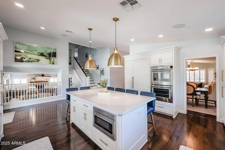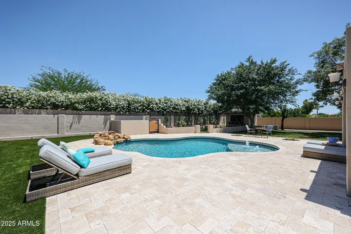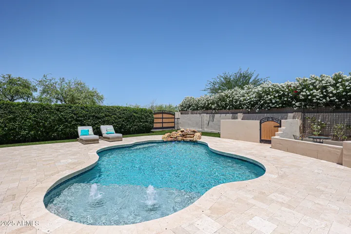 Now available for immediate move in – lawn and pool service included! This stunning tri-level home is packed with upgrades and perfectly located just minutes from the newly reimagined PV Mall, Desert Ridge Marketplace, Kierland Commons, The Quarter and a short walk to Safeway. Whether you’re commuting, shopping, or dining out, everything you need is right around the corner. Inside, the home features a newly remodeled kitchen with sleek quartz countertops, high-end Thermador appliances, a spacious island, and champagne bronze finishes that add a modern, elegant touch. Plantation shutters, remote-controlled window treatments, and surround sound throughout the interior and exterior enhance the upscale feel. The flexible tri-level layout offers space for everyone, including a large family room with fireplace and two bedrooms with a full bath on the lower levelperfect for guests or multi-generational living. Upstairs, the spacious primary suite boasts vaulted ceilings, double vanities, a jetted tub, and a walk-in shower. Two additional bedrooms and a full bath complete the upper level. Step outside to your private backyard oasis on an oversized 13,000 sq ft lot. Take a dip in the sparkling pool with baja shelf, lounge on the travertine patio under the misting system, or if you are a golfer, practice your game on the putting green. Mature, professionally maintained landscaping creates a lush, private feel. A detached air-conditioned pool house offers incredible versatilityuse it as a guest retreat, home office, or game room. Other highlights include RV gates on both sides of the property, a 3-car garage, artificial turf, and no HOA. This home offers the ultimate in comfort, convenience, and resort-style living. Don’t miss your chance to rent one of the best properties in the area!