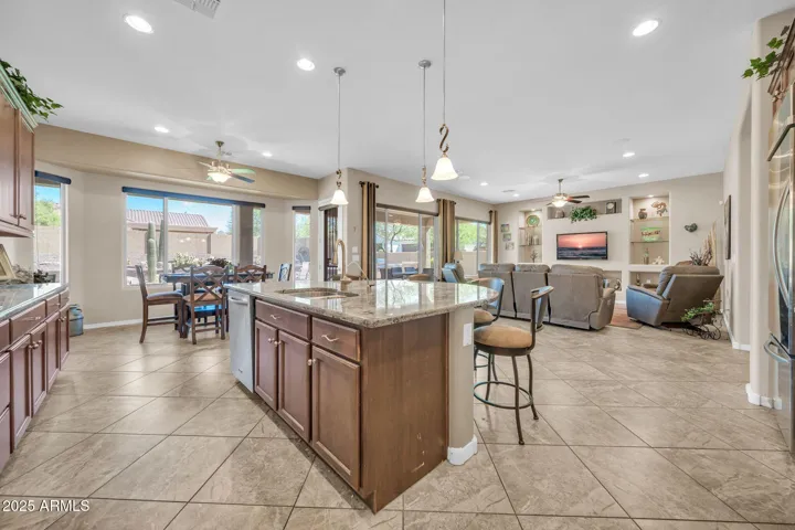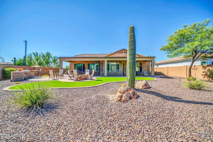 Featured in the backyard, you’ll find an impressive selection of Arizona’s most coveted desert landscaping. Other notable updates include the artificial grass, a paver pathway throughout, built-in BBQ grill & cooktop, built-in fire pit, and an expansive covered patio that extends across the entire length of the home!
