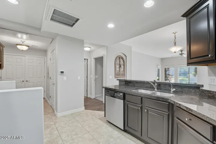 EXCEPTIONAL FIRST FLOOR LOCATION WITH A VIEW OF THE COURTYARD, WATER, AND FIRE FEATURE. THIS BEAUTIFUL 2 BEDROOM, 2 BATH VENITIA PLAN BOASTS HARDWOOD FLOORS IN THE LIVING ROOM, GRANITE COUNTERTOPS IN THE KITCHEN, STAINLESS STEEL APPLIANCES, A BUILT-IN DESK AND CABINETS, AND MUCH MORE! THIS IS AN OPPORTUNITY YOU DO NOT WANT TO MISS! TOSCANA OFFERS RESORT-STYLE LIVING AT ITS FINEST, FEATURING 3 HEATED POOLS AND SPAS, AS WELL AS TWO STATE-OF-THE-ART FITNESS CENTERS COMPLETE WITH LOCKER ROOMS AND STEAM ROOMS. ALL OF THIS IS LOCATED IN THE HIGHLY COVETED MASTER PLANNED COMMUNITY OF DESERT RIDGE, WHICH OFFERS SHOPPING, DINING, AND GOLFING CLOSE BY.